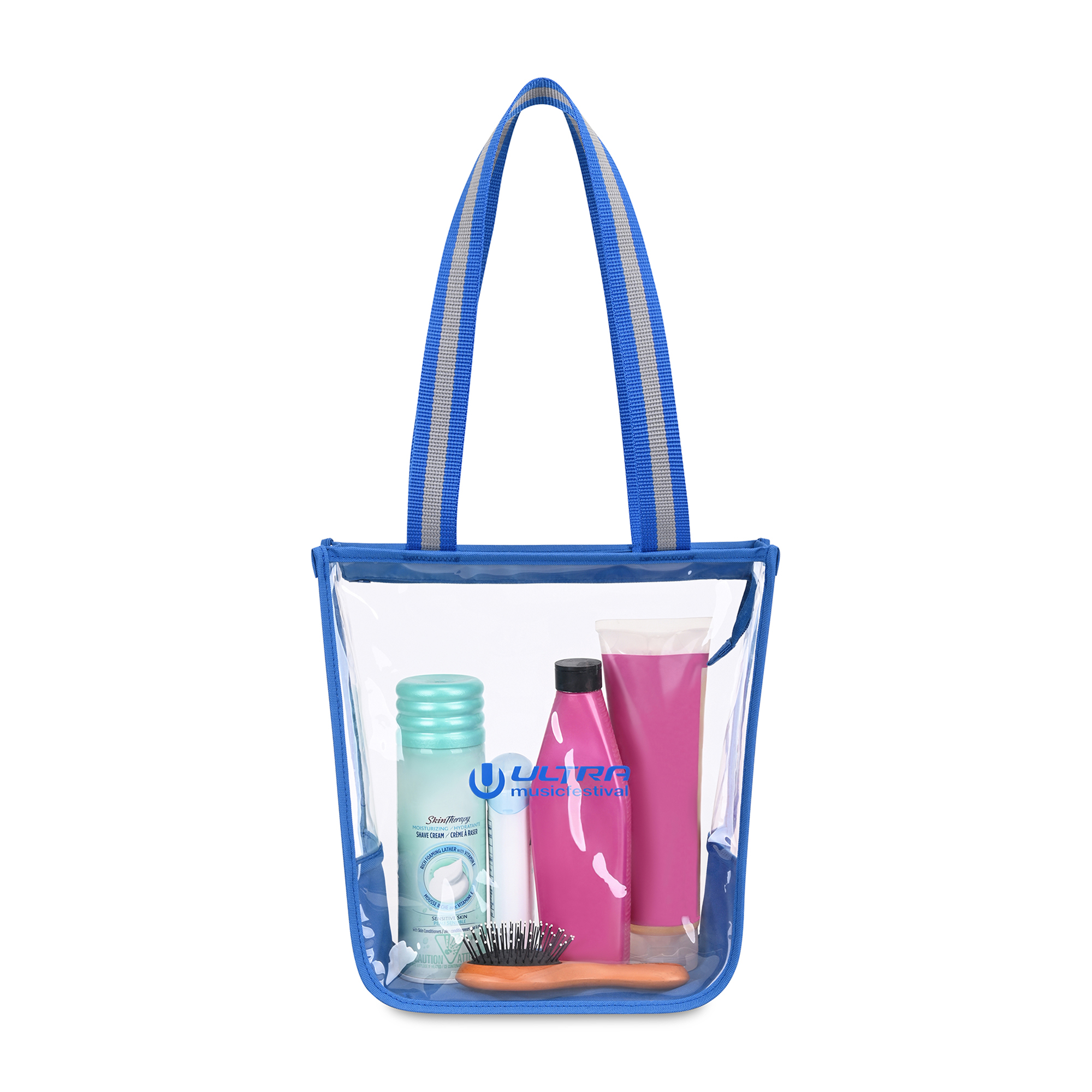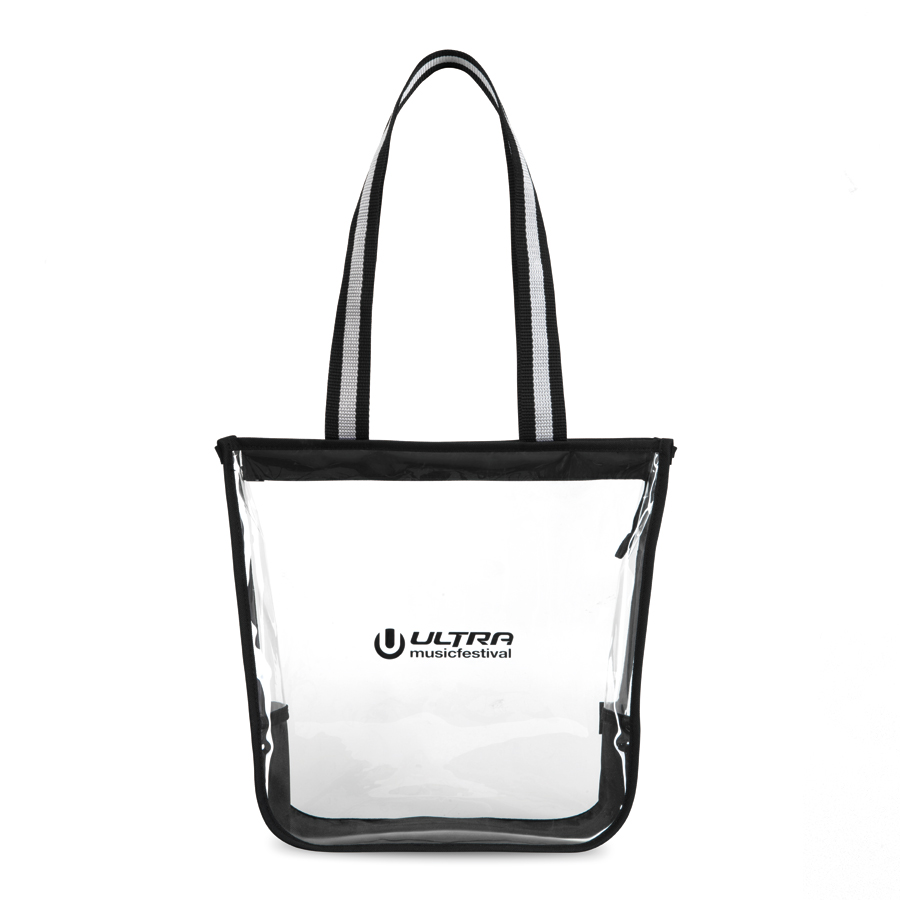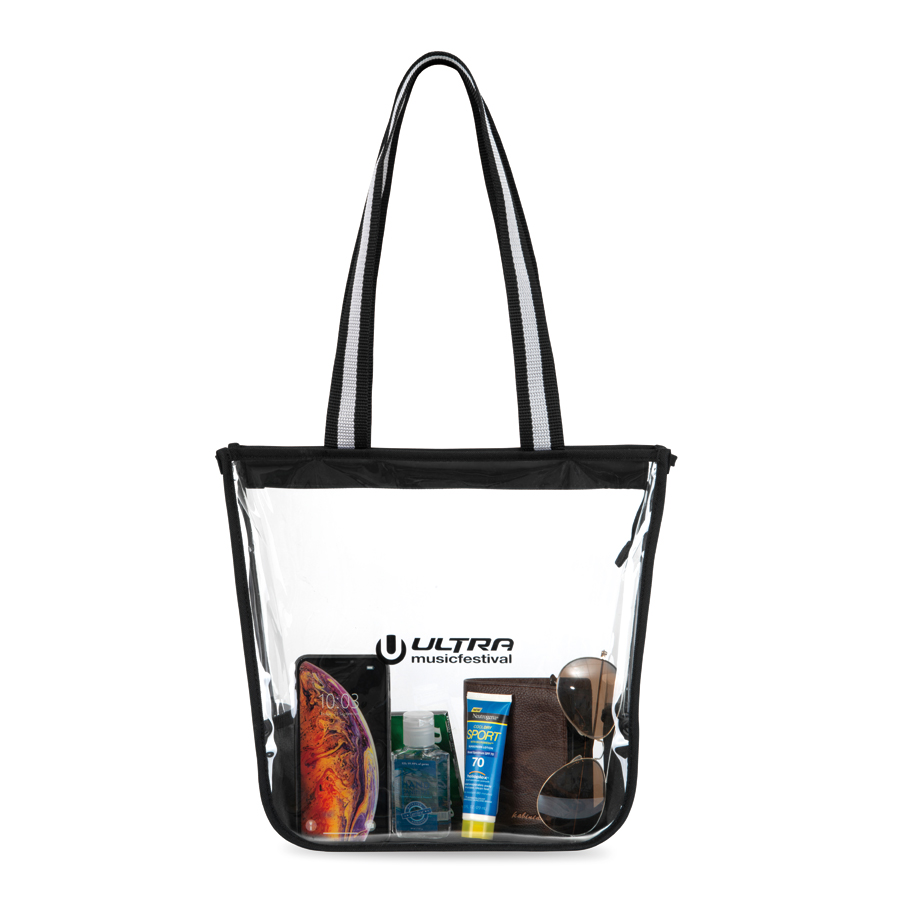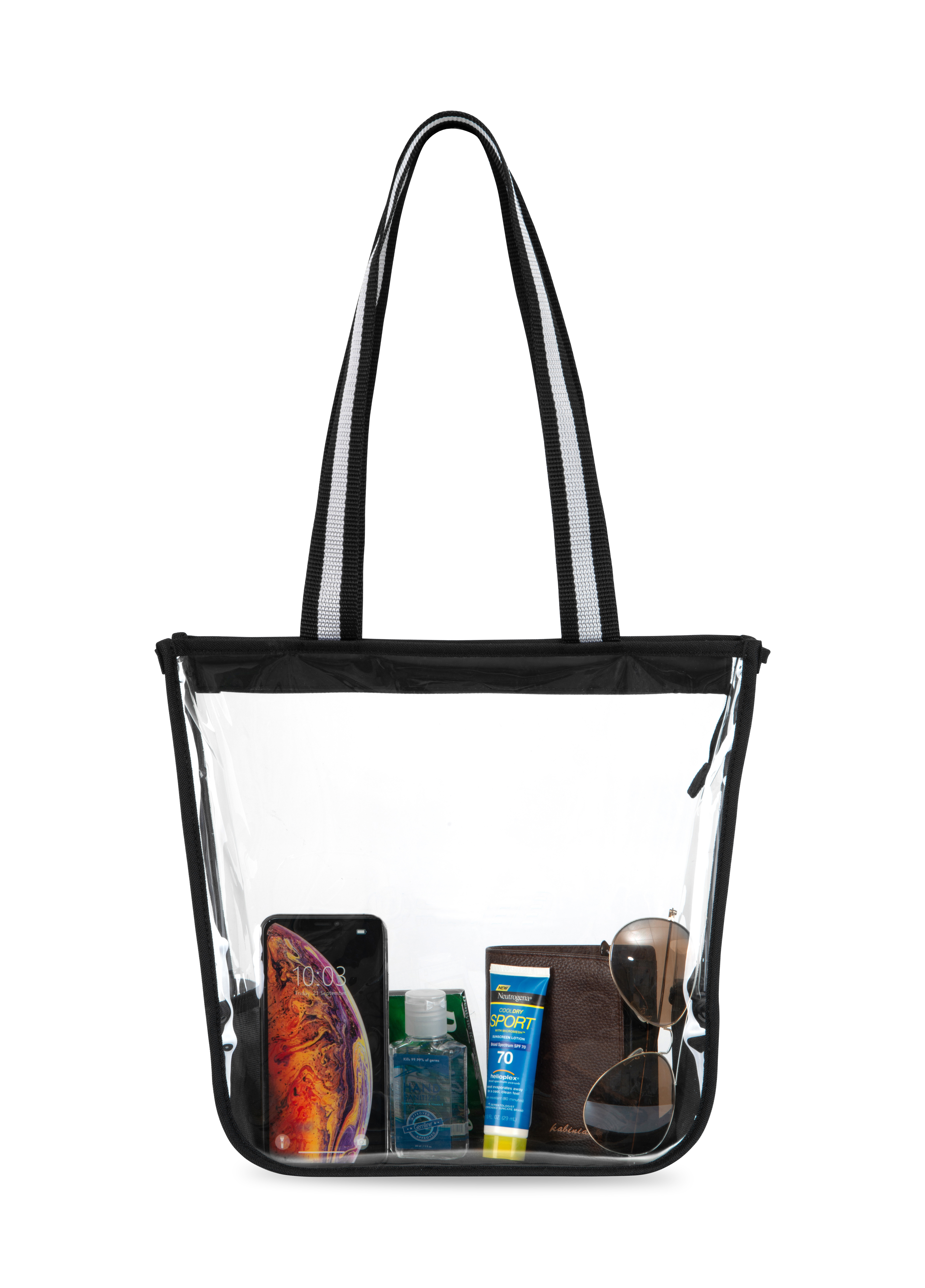 Designed for clear bag policy compliance, the Sigma Clear Zippered Tote keeps essentials visible and secure. With a zippered top, 25″ shoulder straps, and wipeable PVC-free material, it’s the perfect grab-and-go option for stadiums, festivals, or the workplace.