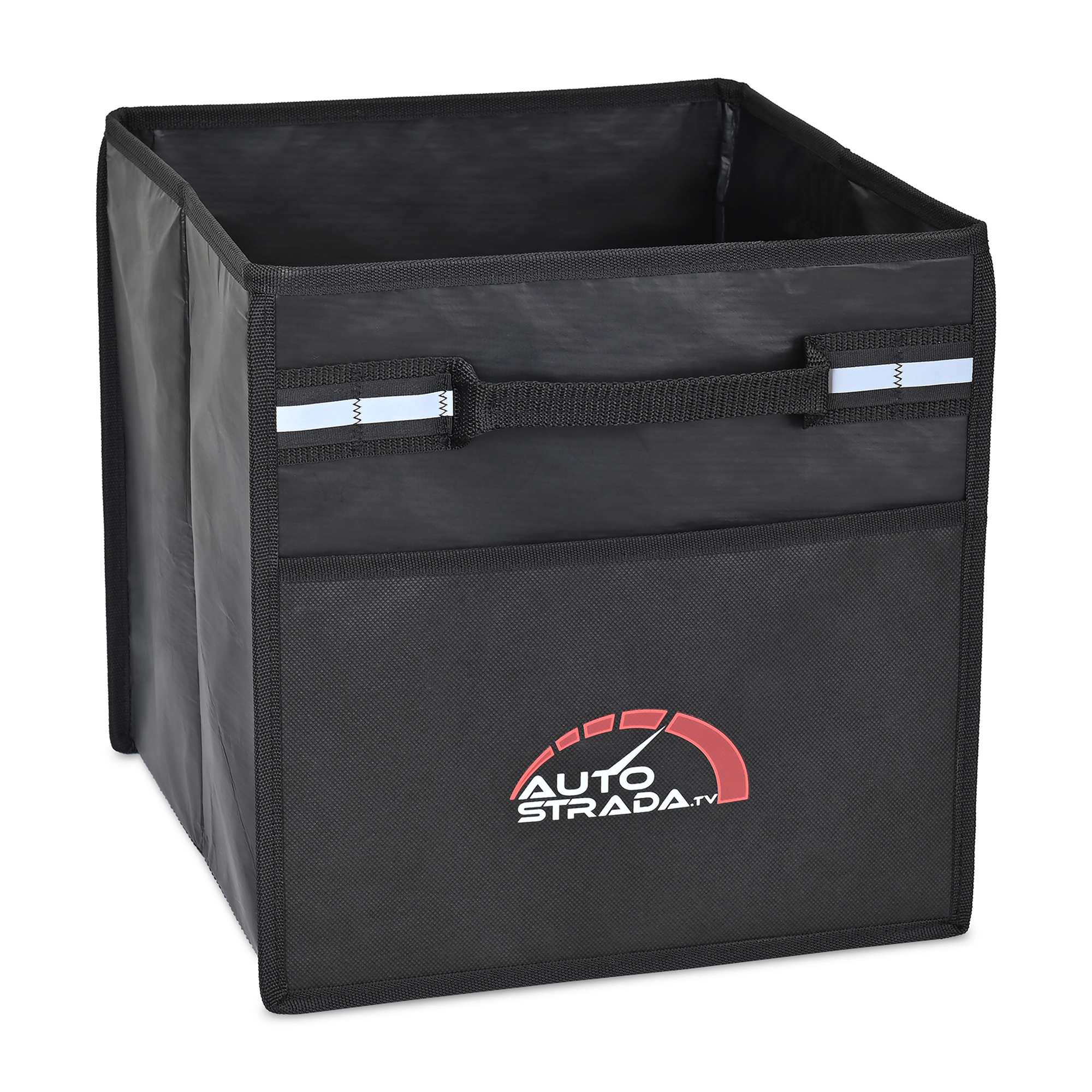 Strong, smart storage. The Structure Cargo Box is crafted from recycled materials and features grab handles, outer pockets, and reflective details for visibility. Hidden side magnets let you connect multiple boxes for expanded organization, while its collapsible design folds flat for easy storage at home, in the office, or in your trunk.