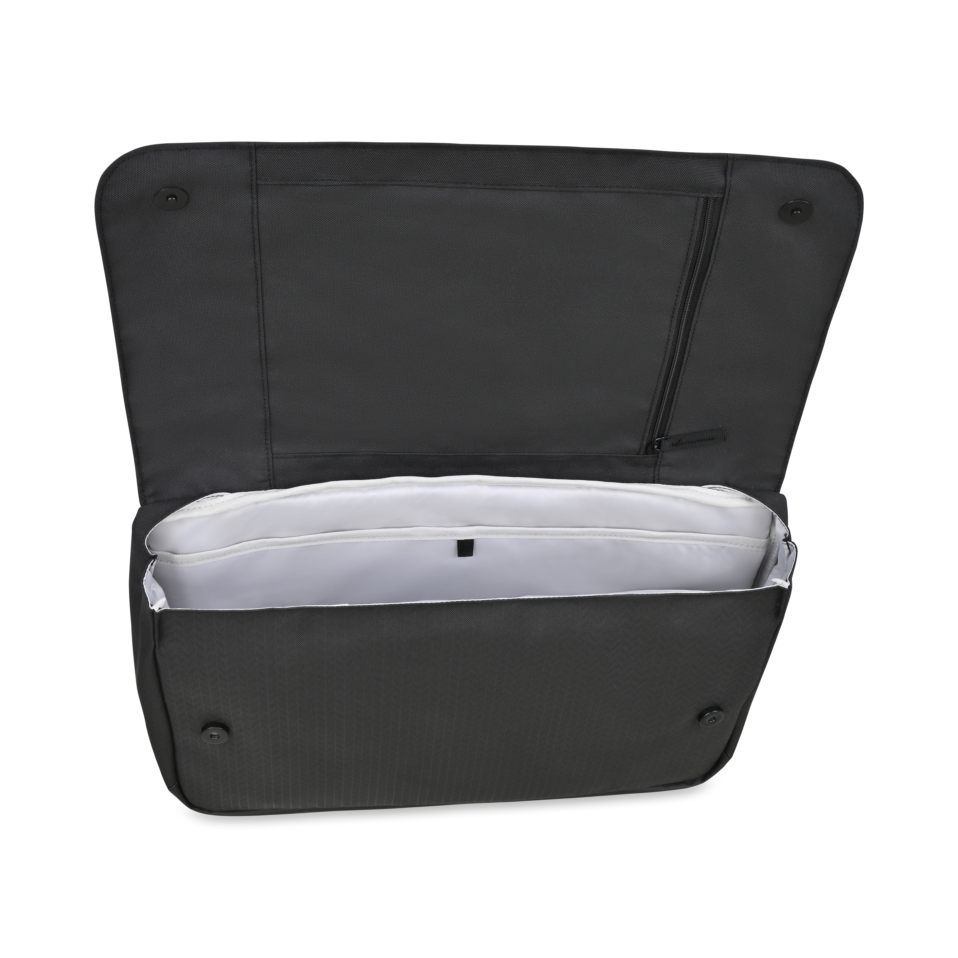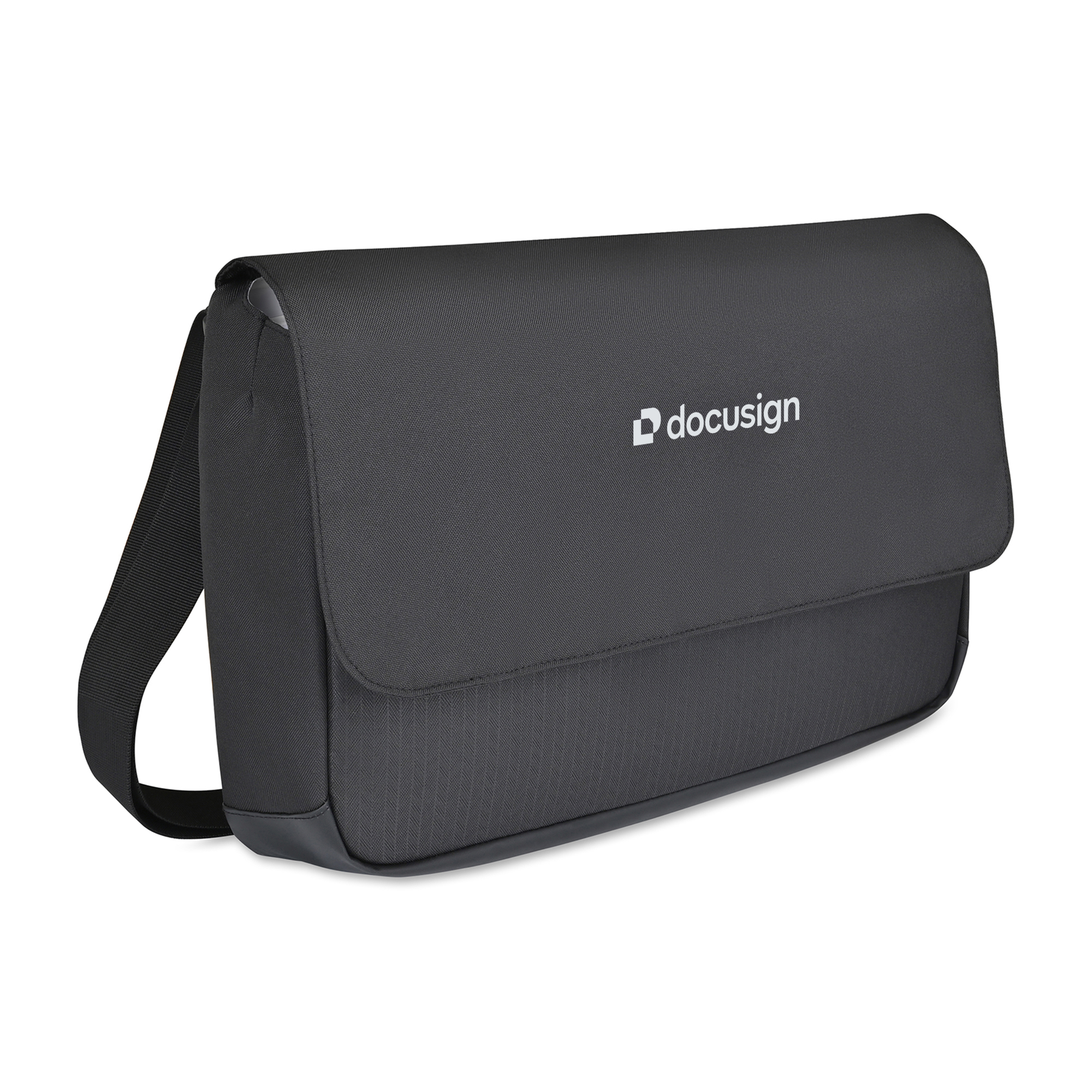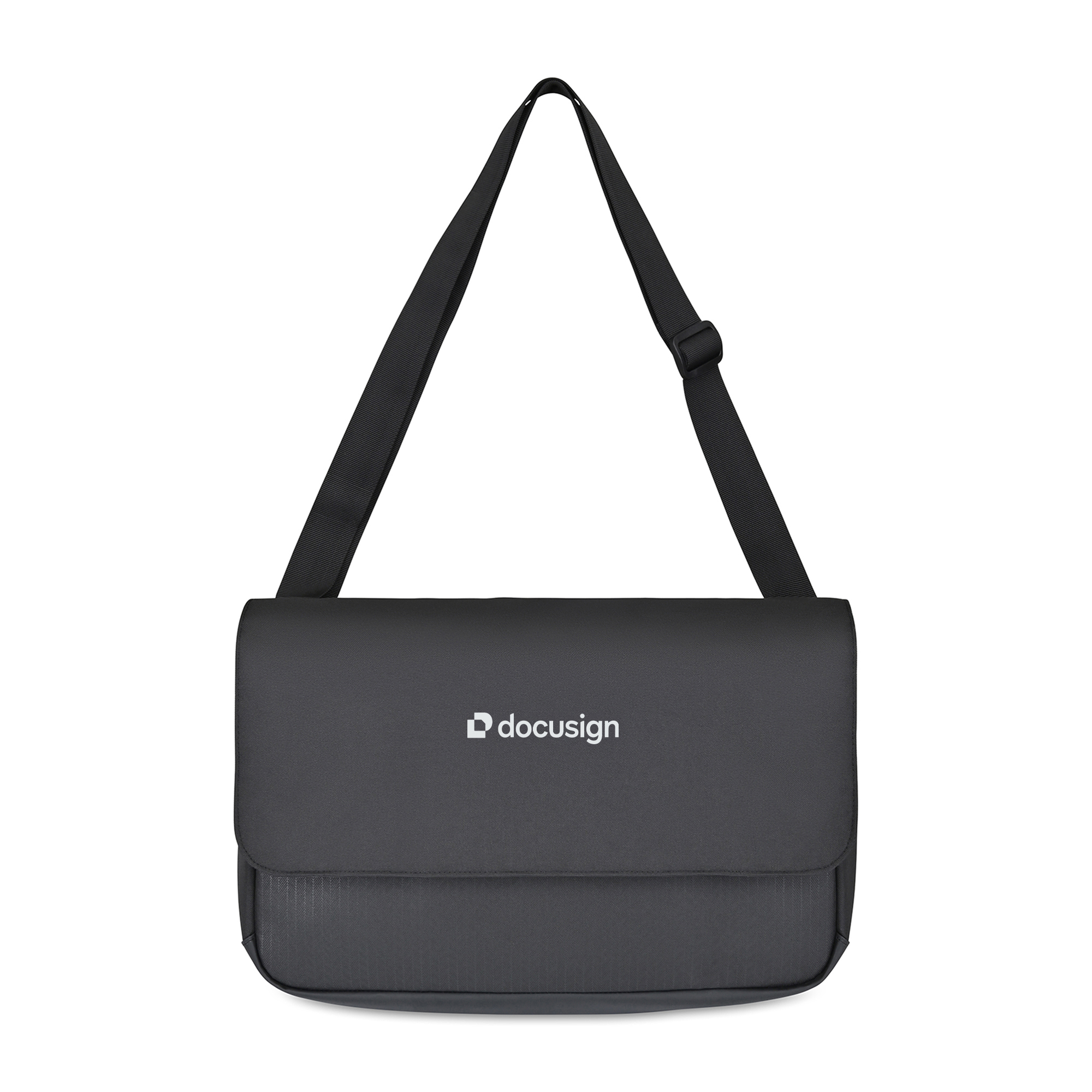 Streamlined for the commute. The Transit Laptop Messenger Bag fits laptops up to 16" and is made from recycled 600D rPET with a subtle stripe pattern. Featuring a front flap with magnetic closures, interior zip pocket, padded back panel, and an adjustable strap, it’s built for everyday carry. A TPU-coated bottom makes cleaning easy.