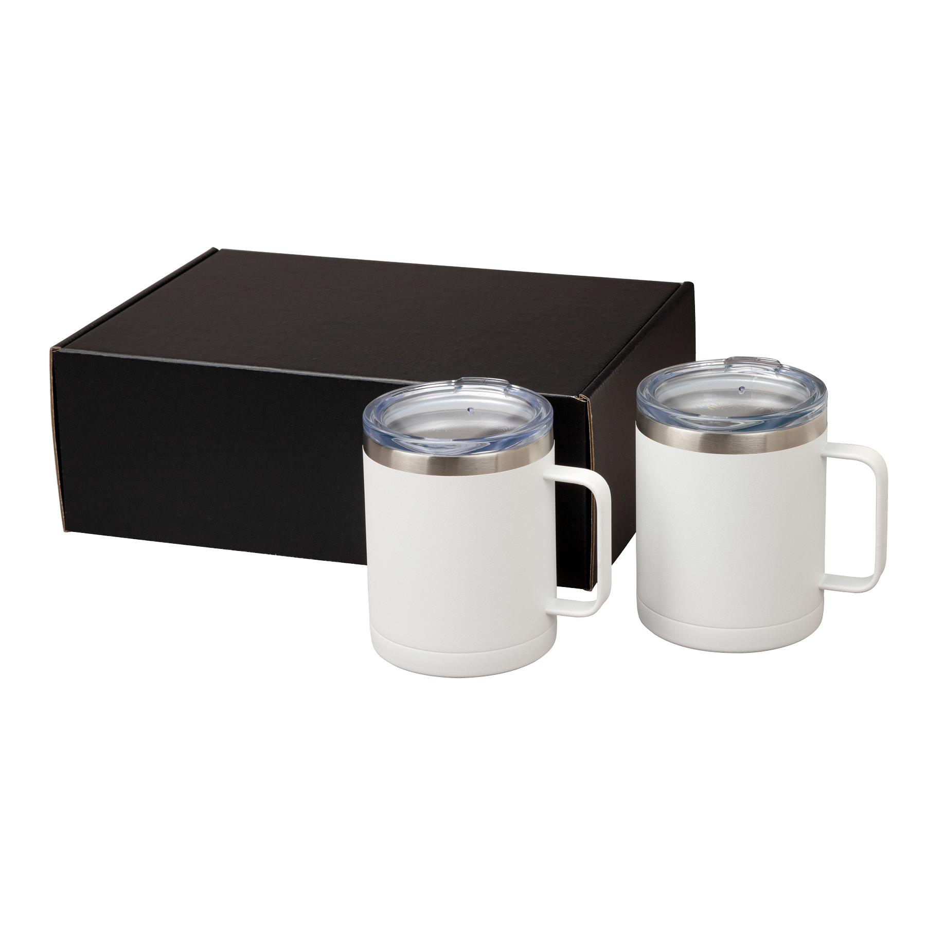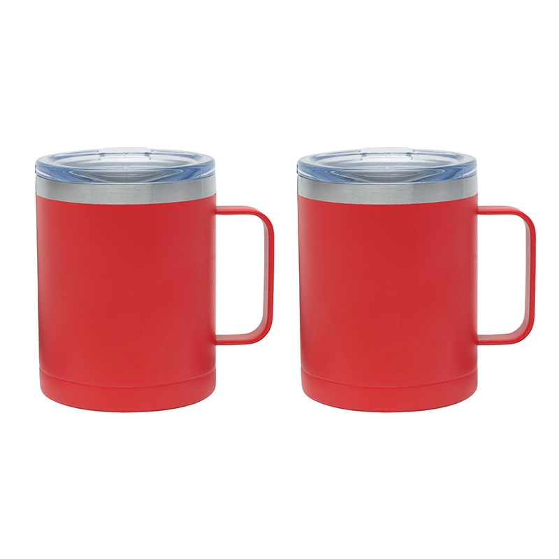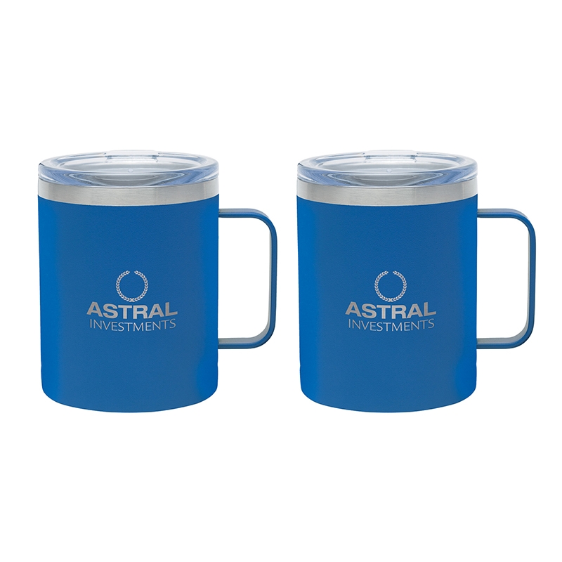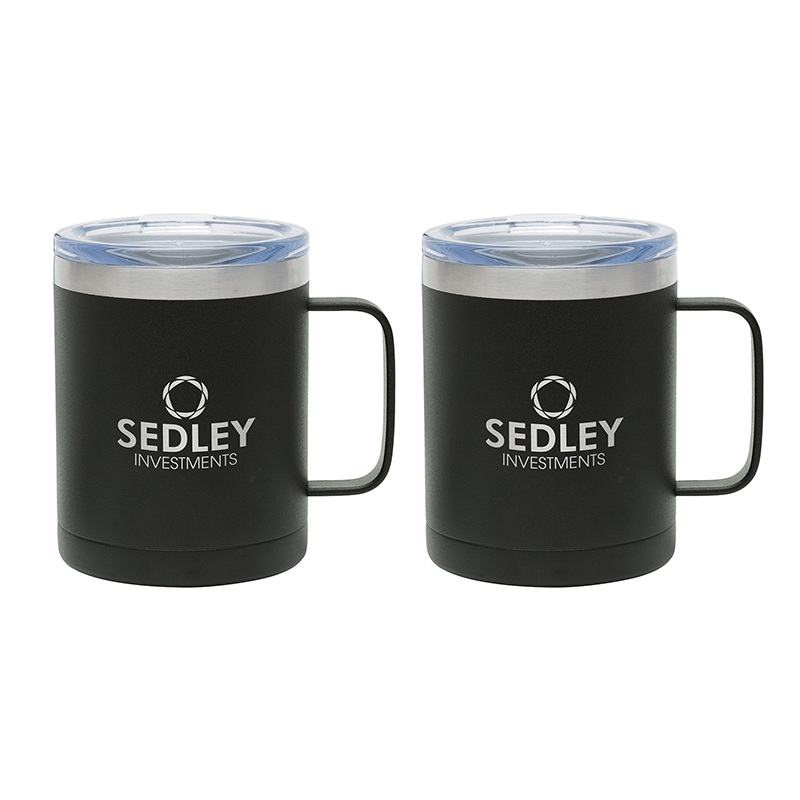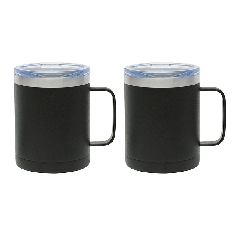 The Camper II Two-Piece Camping Mug Gift Set is the perfect gift for your camp-loving clients and friends. This gift set includes 2 Camper mugs with handles, enclosed in a medium-sized black gift box. Each mug has a 14 oz. capacity, is made of stainless steel, is vacuum sealed and double walled. These mugs have copper lining and each comes with a clear, push-in lid. Use this mug for the outdoors and it will keep your cold drinks cold for 12 hours or for the indoors as it is compatible with most single serve coffee machines and will keep hot drinks hot for 8 hours. These mugs have powder-coated finishing and are FDA compliant and BPA free.