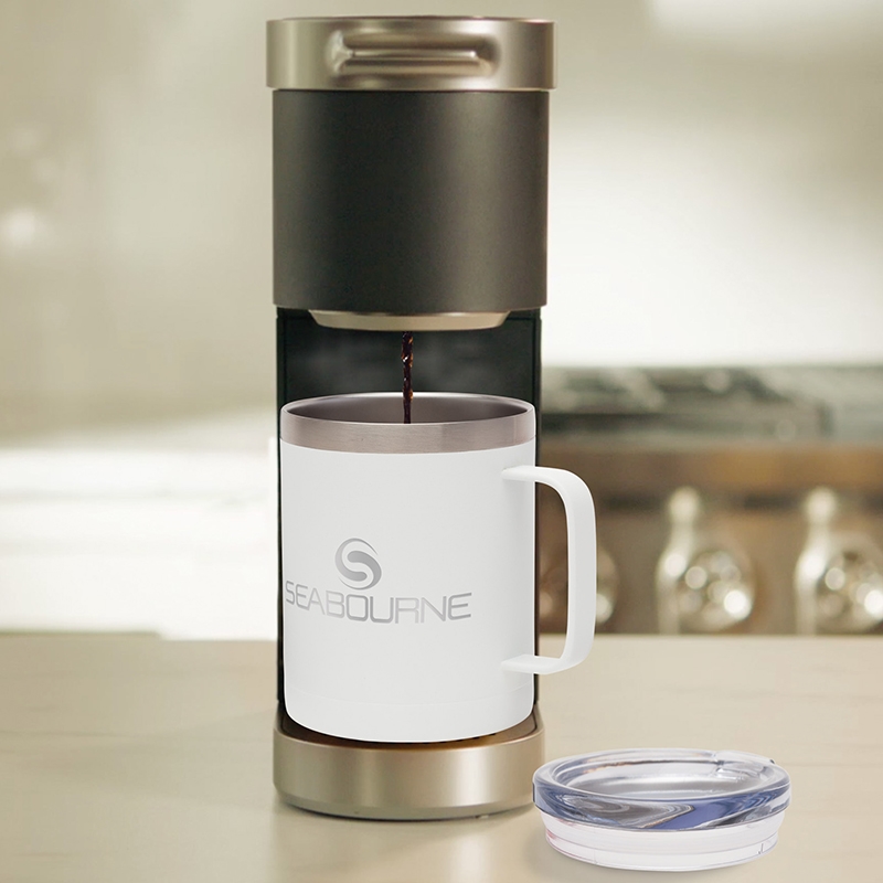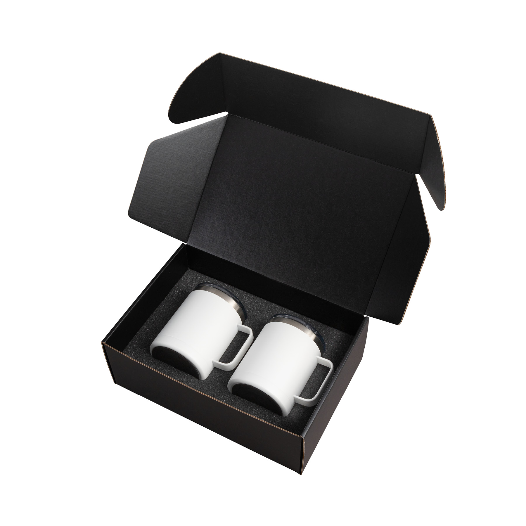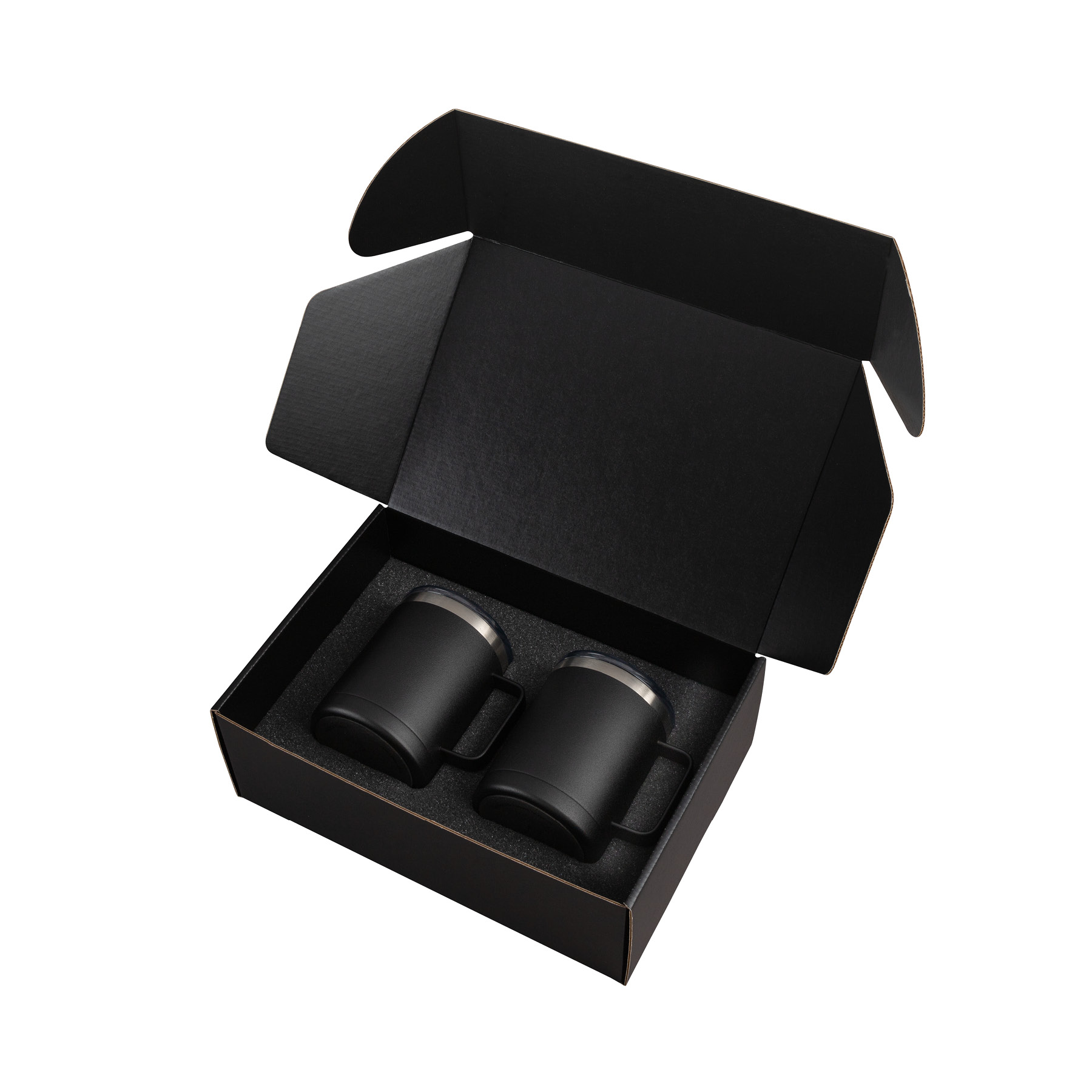 The Camper II Two-Piece Camping Mug Gift Set is the perfect gift for your camp-loving clients and friends. This gift set includes 2 Camper mugs with handles, enclosed in a medium-sized black gift box. Each mug has a 14 oz. capacity, is made of stainless steel, is vacuum sealed and double walled. These mugs have copper lining and each comes with a clear, push-in lid. Use this mug for the outdoors and it will keep your cold drinks cold for 12 hours or for the indoors as it is compatible with most single serve coffee machines and will keep hot drinks hot for 8 hours. These mugs have powder-coated finishing and are FDA compliant and BPA free.