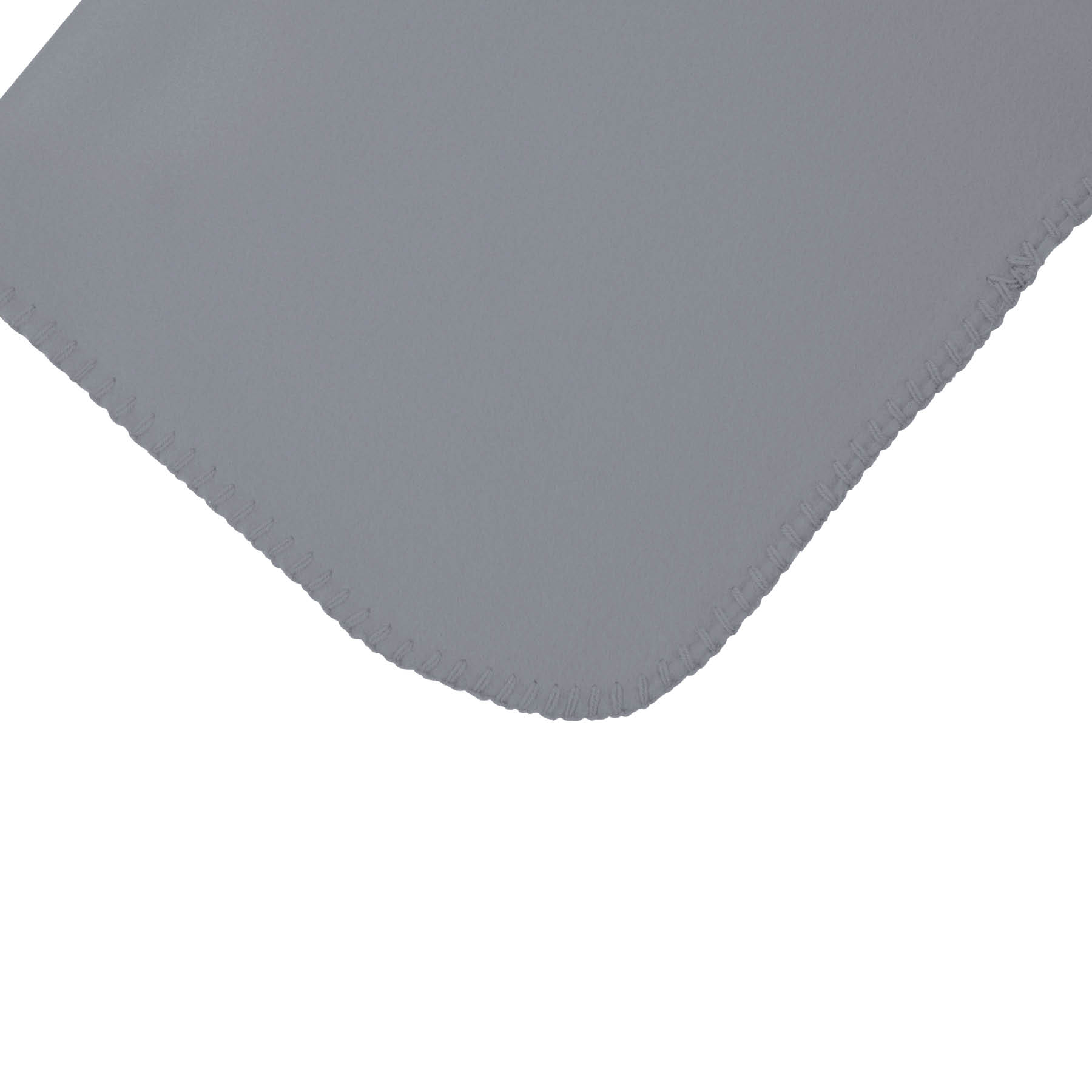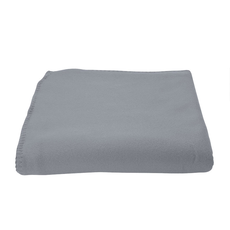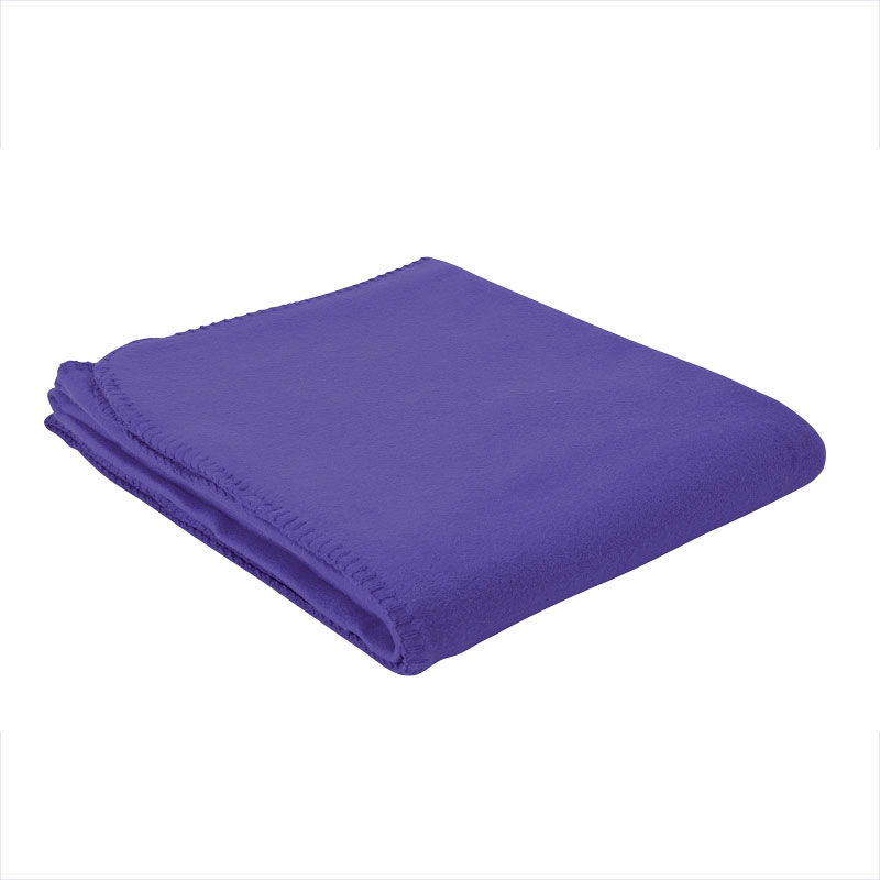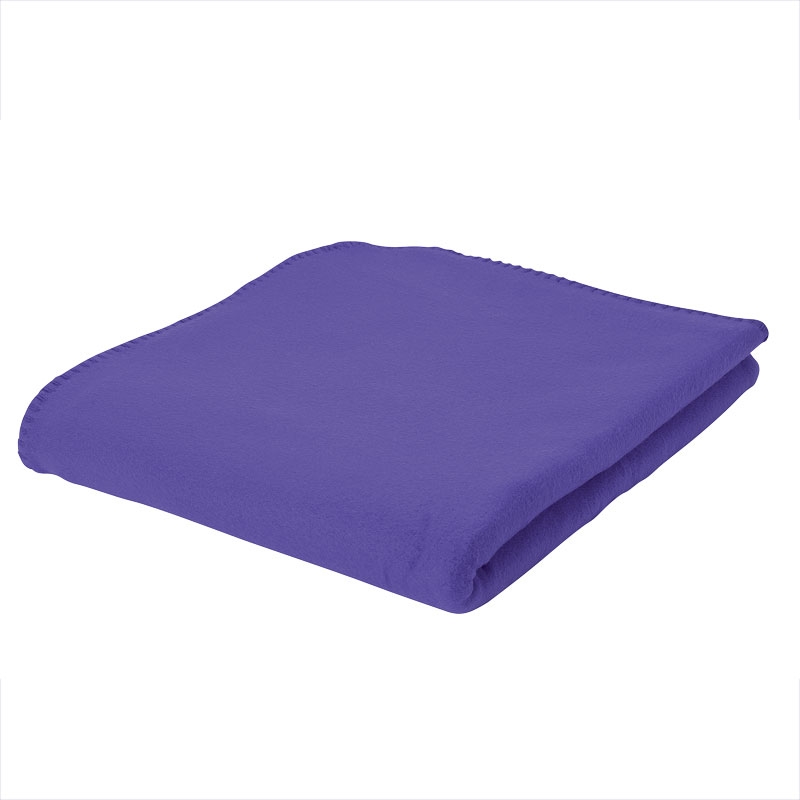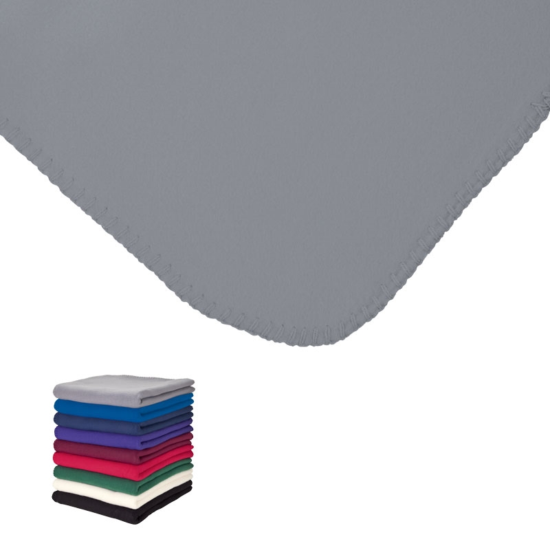 50" x 60" 200gsm fleece blanket brushed on both sides, with color matching whipstitch edging.