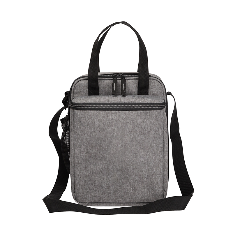 The Hudson lunch cooler is perfect for keeping your food, snacks, and drinks cool on a hot day. Made from durable 300D polyester with a two-tone grey finish, it has two PEVA-lined insulated zippered compartments, an interior mesh pocket and an exterior side mesh pocket. Carry the Hudson with you using its carry handles or the 1 1/4" x 48" adjustable shoulder strap.