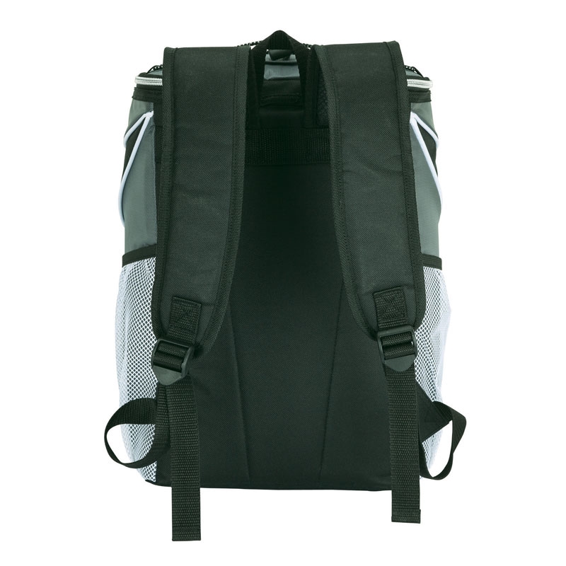 The Victorville backpack cooler is perfect for your next excursion or trip to the market. It has a 30-can capacity and is made of durable 600D polyester and 420D, has insulated PEVA lining and an elastic tie-down cord on the top compartment closure. Two mesh side pockets flank the outside of the bag, and a front zipper compartment provides plenty of room for items you don't need to keep cold. Comes with a carry handle and padded adjustable backpack straps.
