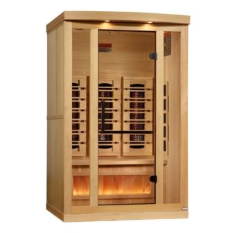 The Golden Designs 2025 Reserve Edition GDI-8020-02 is a luxurious 2-person full-spectrum infrared sauna, crafted from sustainably sourced Canadian hemlock. It integrates advanced PureTech™ Near Zero EMF carbon and Near Infrared heaters for comprehensive warmth, while a Himalayan salt bar under the bench promotes air purification and calm. Designed with bronze privacy glass, ambient lighting, and a sleek control interface, it delivers spa-worthy wellness in your h