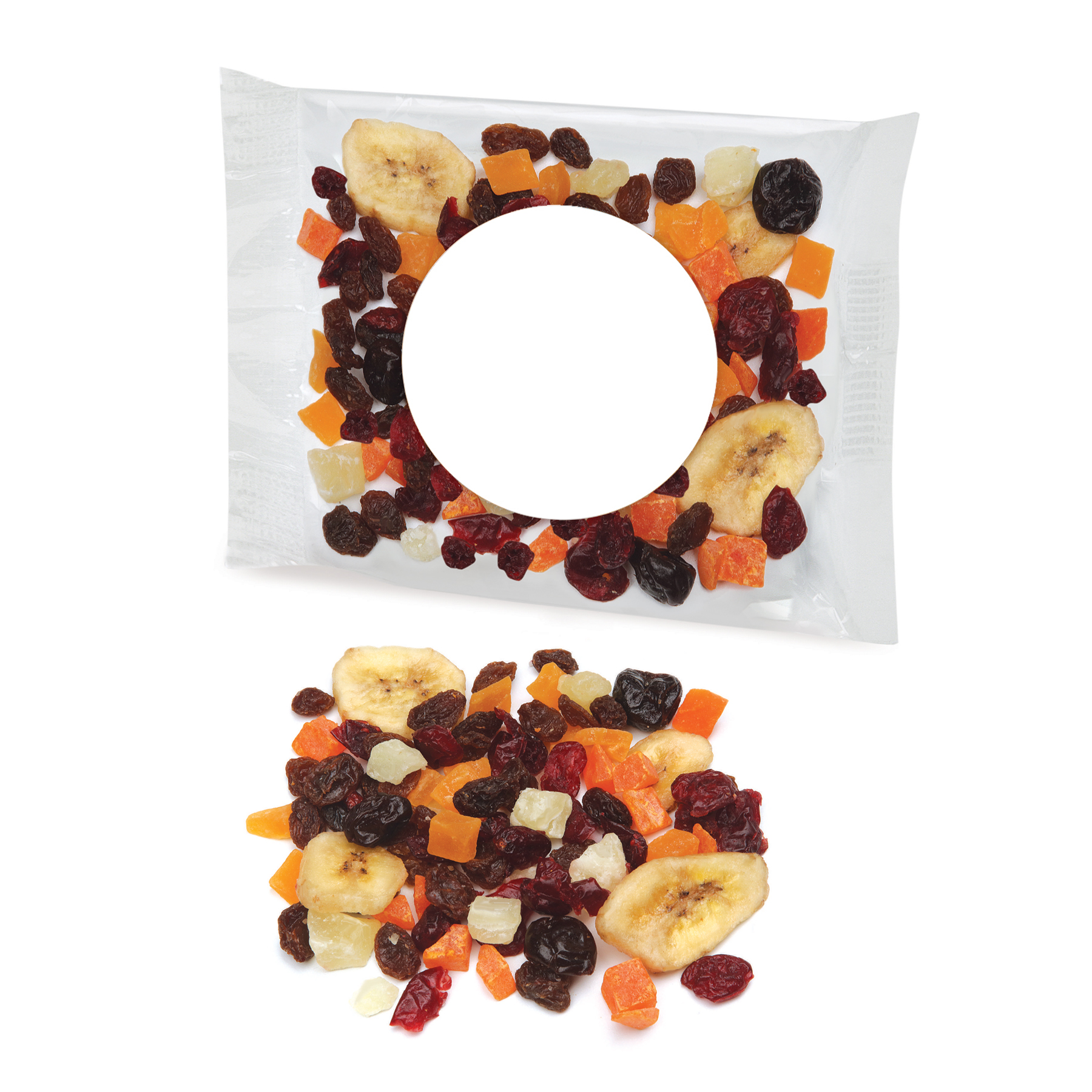 Choose this delightful blend of dried raisins, cranberries, mango, papaya, pineapple, banana, and cherries whenever you want to give a sweet, healthy treat. Its great for enjoying on its own and marvelous when used in baking or mixed into oatmeal or yogurt for just the right amount of fruity flavor. Rich in vitamins, minerals, and antioxidants, it may very well be the perfect snack! Contents: Gourmet Fruit Medley, 1.5 oz.