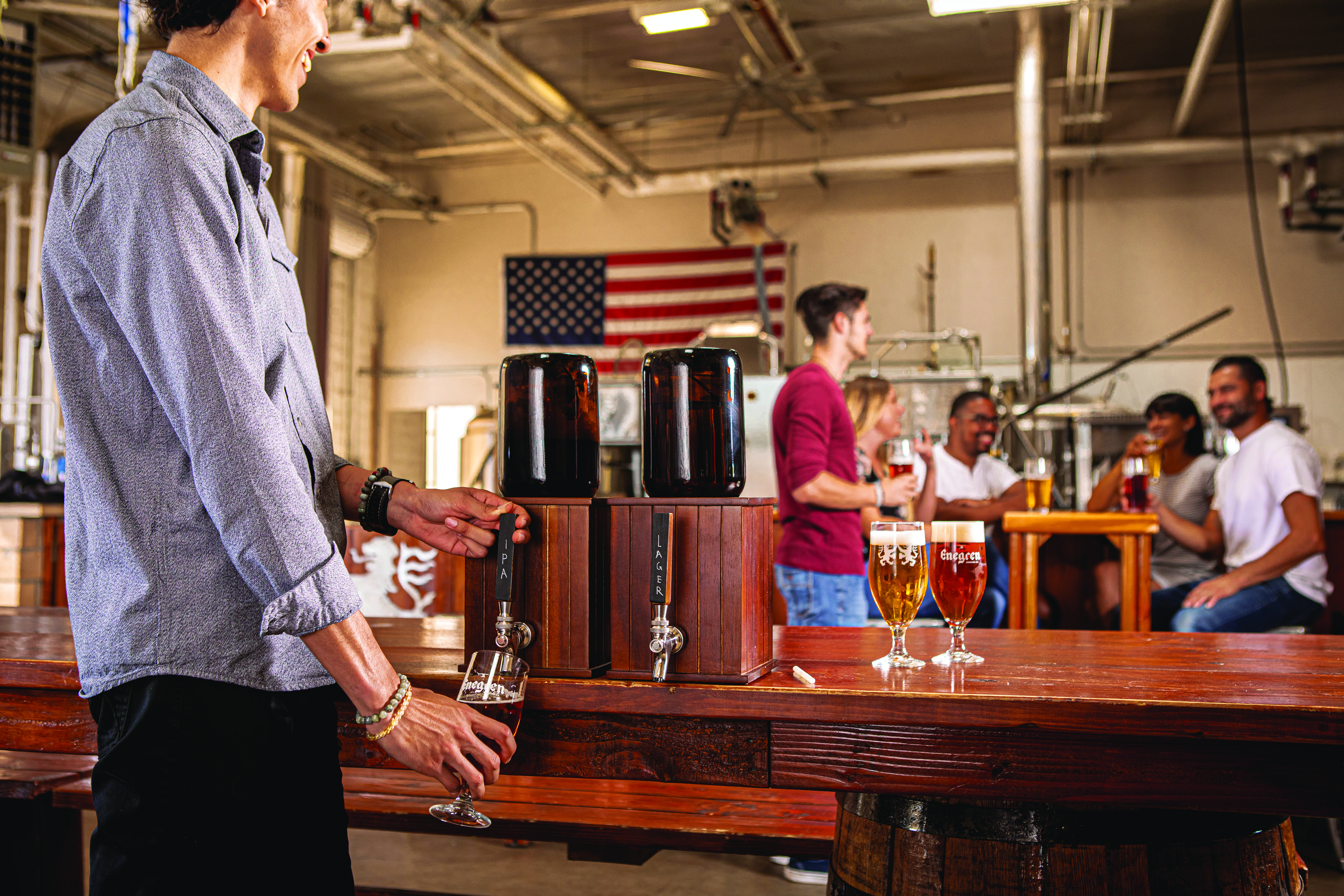 We're living in a great time for beer, and it just got better with the original, Picnic Time Growler Tap, a 64 oz amber glass growler that sits atop a dark acacia wood base with a stainless steel tap that allows you to pour glass after glass of your favorite brew, keg style! This iconic beverage dispenser also comes with a chalkboard handle so you can write what's on tap. Pub crawling? The Growler Tap easily stores in your backpack, but it can just as easily be the elegant centerpiece of your home bar top. You won't find this anywhere else...until your friends see yours and buy their own!