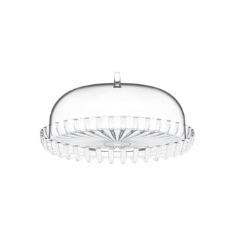 The Dolcevita Cake Serving Stand is an elegant and practical set that includes a beautifully designed tray and a protective dome, perfect for showcasing cakes, pastries, or snacks. Made in Italy from 60% bio-based plastic, the material is derived from biological waste and certified through the ISCC mass balance approach, making it a sustainable choice. The clear dome keeps food fresh and visible, acting as an anti-dust shield while enhancing presentation. The tray also functions independently as a versatile serving platter. Crafted from 100% recyclable materials, this stand blends eco-conscious design with everyday functionality. Dimensions: 6.30" H x 12.20" W x 12.20" D. A stylish, eco-friendly addition to any gathering or celebration.