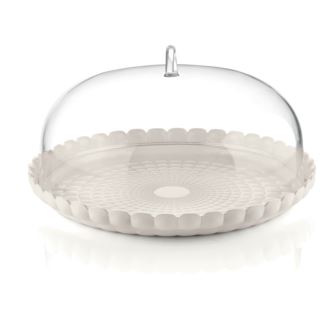 The Tiffany Cake Serving Set is a beautifully crafted, multifunctional centerpiece for any dessert spread. Made in Italy from BPA-free plastic, it features a transparent dome and a reversible base tray with the iconic Tiffany relief chequered pattern. Measuring 7.28"" x 14.17"" x 14.17"", the domed dish preserves freshness and elevates presentation, while the double-sided base serves soft cakes on one side and tarts or pastries on the flat side. Elegant and functional, its ideal for formal dining, birthdays, or garden parties. Dishwasher-safe and lightweight, it ensures convenience without compromising style. Add a sophisticated sparkle to every occasion with this standout piece from the Tiffany collection, perfect for entertaining and everyday indulgence.