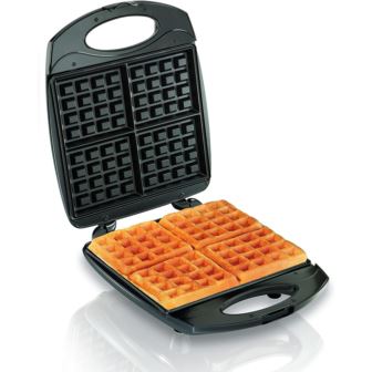 Make your weekends special with hot, tasty waffles made in the Hamilton Beach Belgian Style Waffle Maker. Just wait for the Ready light to come on, and then add the batter. In 4 to 5 minutes, you'll have two delicious waffles hot and ready to serve. It's a treat the whole family will love to wake up to. Weekday mornings are usually rushed. Cereal, yogurt, or toast is about the best busiest families can do for breakfast. But the weekends are different. Take a few minutes to enjoy a meal together and make it special with homemade Belgian-style waffles. Crunchy on the outside and soft on the inside, served with a little bit of melted butter and maple syrup, it's a delicious way to kick off the day. Homemade or store-bought batter cooks to a golden brown on the easy-to-clean nonstick grids. Just wait for the Ready light to come on, then add the batter. In 4 to 5 minutes, you'll have four delicious waffles hot and ready to serve. When finished, the nonstick grids clean up with a simple wipe down. Compact, upright storage allows the waffle maker to fit easily into the cupboard or pantry.