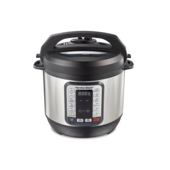 Prepare food up to 70% faster with pressure cooking in the Hamilton Beach QuikCook Pressure Cooker. It's a pressure cooker, slow cooker, rice cooker, steamer, egg cooker, yogurt maker and more. It has 12 preset cooking programs.