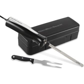 The Hamilton Beach Electric Knife effortlessly carves turkey, ham, roasts, and other meats. It's also great for slicing artisan and homemade breads and for DIY craft projects. Includes stainless steel blades, carving fork, and compact storage case.