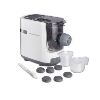 Prepare in 4 easy steps. 7 Pasta discs: Thick Spaghetti Lasagna Angel hair Wide noodle Penne and Fettuccini. Pasta ready to boil as soon as it is expelled from the maker. Automatically calculates how much water needed based on the amount of flour added. Built-in storage drawer for pasta discs. Create endless kinds of pasta and add vegetable juices for color and flavor. Dishwasher safe removable parts. Includes: Cleaning tool. 7 Pasta discs. Measuring cup for flour and water. 4 Recipes with tips.