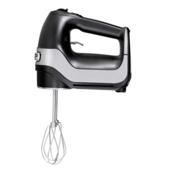 Mix any recipe effortlessly with the Hamilton Beach Professional 5-Speed Hand Mixer. This electric mixer has a slow start that prevents splatters, a QuickBurst at every level and a snap-on storage case. The attractive metallic black color with chrome bands looks great in any kitchen.
