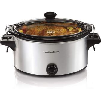 This Hamilton Beach Stay or Go 6-Quart Slow Cooker is ideal for taking hot dishes to parties, cookouts and more. It features a gasket lid with canister-style clips that lock it firmly in place to prevent spills. The spacious oval shaped crock allows it to easily accommodate a chicken up to 6 lbs. or a roast up to 4 lbs. With full grip handles, carrying it to and from your event is simple. This Hamilton Beach slow cooker has a stoneware crock that removes and is dishwasher safe for quick cleanup. It's suitable for an array of dishes including soups, stew, and roasts. The stainless-steel design gives it a sleek look. With this slow cooker, you can enjoy easy, no watch cooking and the convenience of portability.