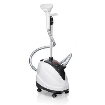Let's face it, Ironing clothes can be a chore and dry-cleaning is expensive. Now there's a better option: the Hamilton Beach Full-Size Garment Steamer. It quickly and easily removes wrinkles from clothes, drapes, bed skirts, and a wide array of fabrics. Since it has 1500 watts of power, wrinkles just melt away and clothes are instantly refreshed. It heats up fast and provides continuous steam for 90 minutes, so there's no need to constantly refill it with water. Since it's gentle on fabrics, you'll use it for everything from cotton blends to synthetics and more. The removable water tank fills up easily at the sink and holds enough water for 90 minutes of steaming. The wheels on the bottom provide mobility, making it easy to move from room to room. Skip time-consuming ironing and stop over-spending on dry-cleaning today. Bring home the Hamilton Beach Full-Size Garment Steamer and all your fabrics will look smoother in minutes. Includes steam nozzle, crease attachment and brush attachment.