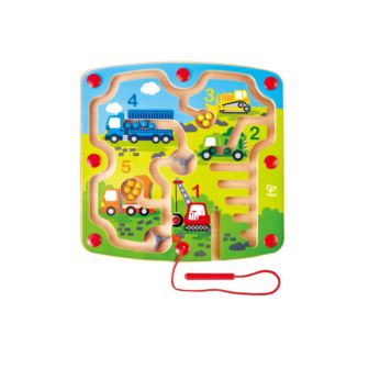 Help young learners navigate the construction site and boost early numeracy with the Hape Construction & Number Maze. Tilt the board or use the included magnetic wand to guide the balls through the maze of paths, revolving doors and corners. With beautifully illustrated scenes and five numbered construction vehicles, this educational puzzle encourages hand-eye coordination and color recognition. Suitable for children aged 24 months +