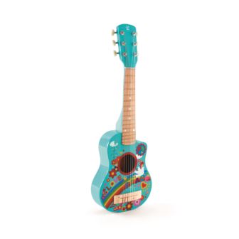 Let your little musician shine with the Hape Flower Power Guitar. This 26-inch, 6-string wooden guitar is sized for young hands and features a vibrant ‘60s-inspired floral design. With tunable strings and a full-sized feel, it's perfect for ages 3+. Crafted from durable wood with child-safe finishes, it introduces rhythm, melody and musical exploration with style.