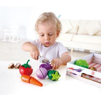 There's nothing healthier than fresh vegetables! Trim the stems and then use the play knife to cut the green pepper, tomato and more. The vegetables are held together with self-stick tabs and come apart for extra realism. Age: 3+