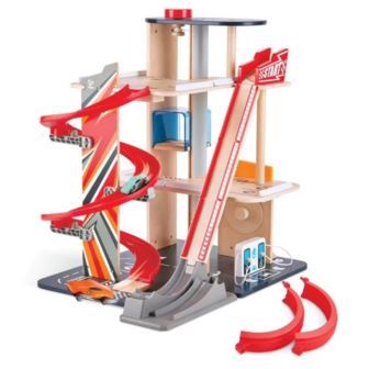 This awesome 3-level garage is the perfect place to store your supercars and practice your stunts! The hand-wound box car lift can get your cars to different levels. The garage features a service center with a rotating board, two solar-powered charge points, a twirling spiral ramp and even a massive loop the loop! Make sure your cars are powered up at the charge points! Turn the knob to raise and lower the box car lift. The 360 degree anti-gravity loop can actually be transformed into a separate slope for jumping stunts! 3-level garage playset : Includes two free-wheeling cars: Features a spiral ramp and a loop the loop track for the cars to speed down: The 360 degree anti-gravity loop can also be transformed into a separate slope for jumping stunts.