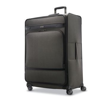 Travel in timeless style. Hartmann Herringbone Deluxe evokes a bespoke design with signature herringbone fabric and interior Ducord™ striped accents. Modern conveniences like USB ports, padded tri-fold suiters, and ultra-smooth rolling wheels ensure every outing is as pleasurable as it is stylish. Steal away for a weekend in style with this tailored, mid-sized bag. Hartmann signature herringbone fabric and interior Ducord™ striped accents set a distinctive look, while padded handles and strap ensure carrying comfort.