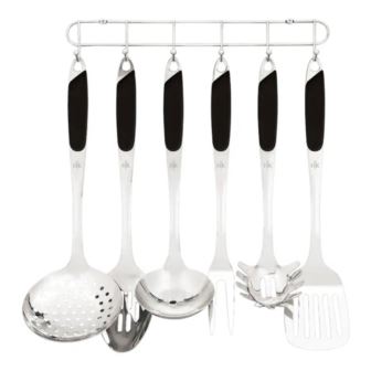 PACKAGE INCLUDES:1 x Strainer1 x Slotted Spoon1 x Ladle1 x Fork1 x Spaghetti Spoon1 x Slotted Spatula1 x Hanging RackIDEAL FOR:- Everyday cooking at home- Stirring, flipping, straining, and serving- Organizing your kitchen with style