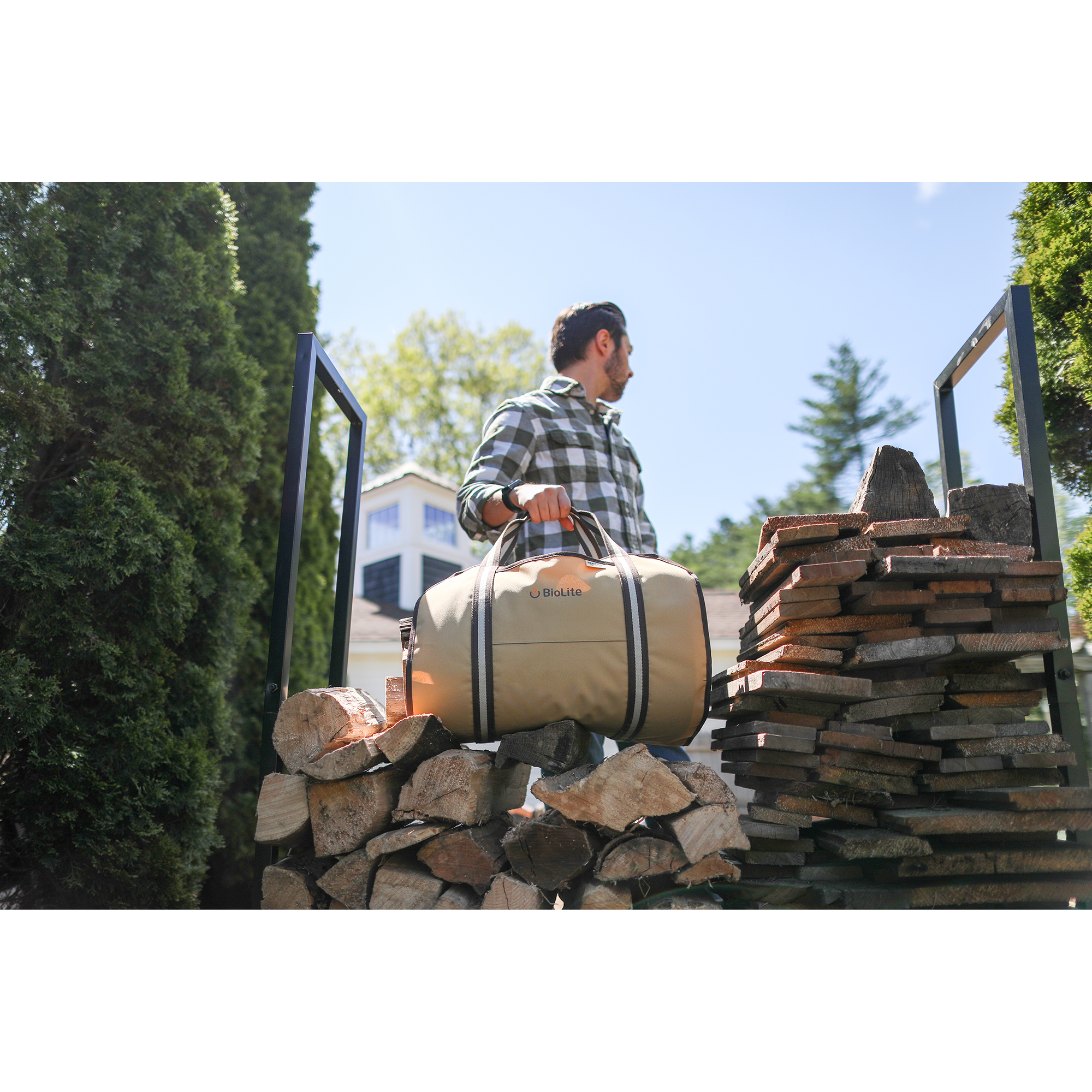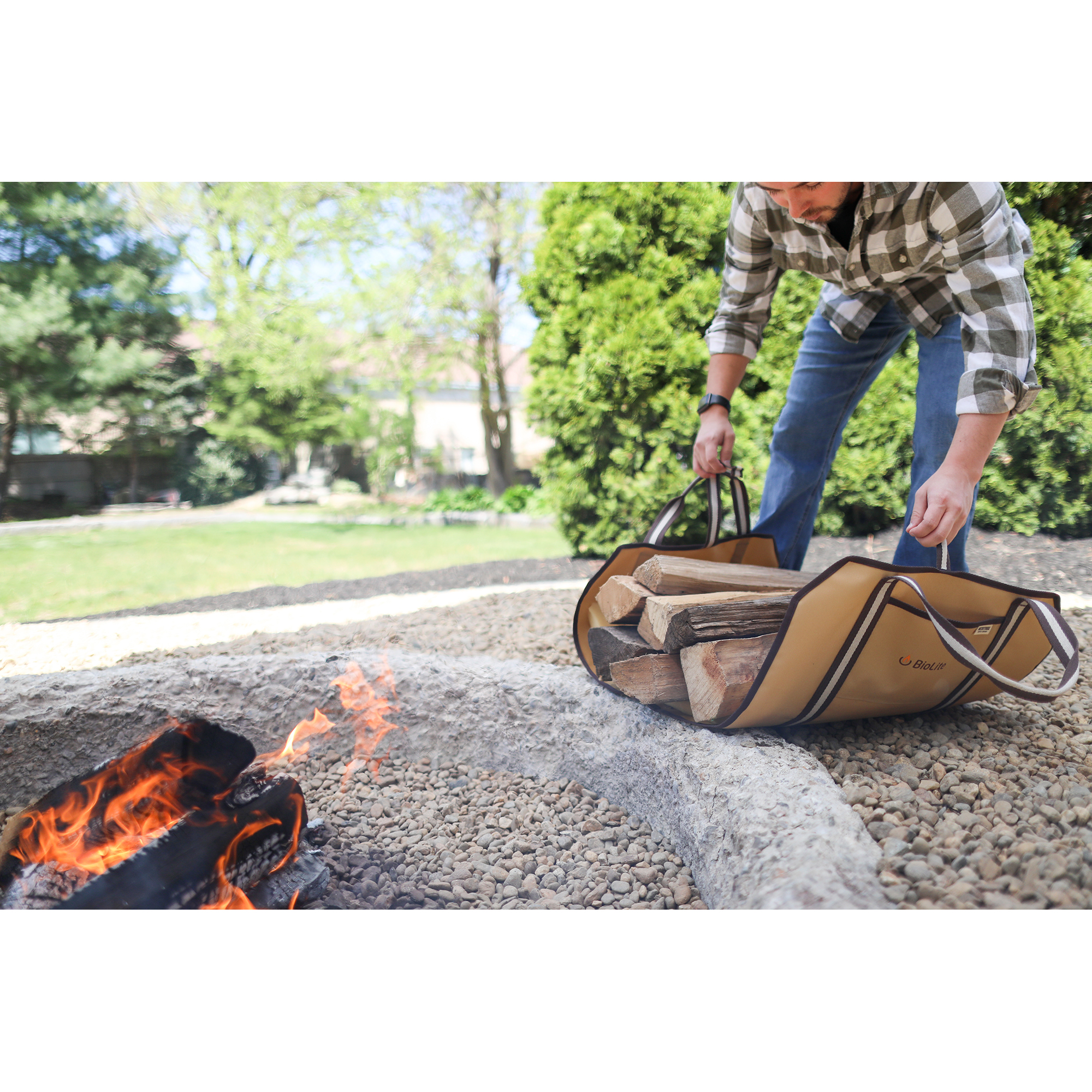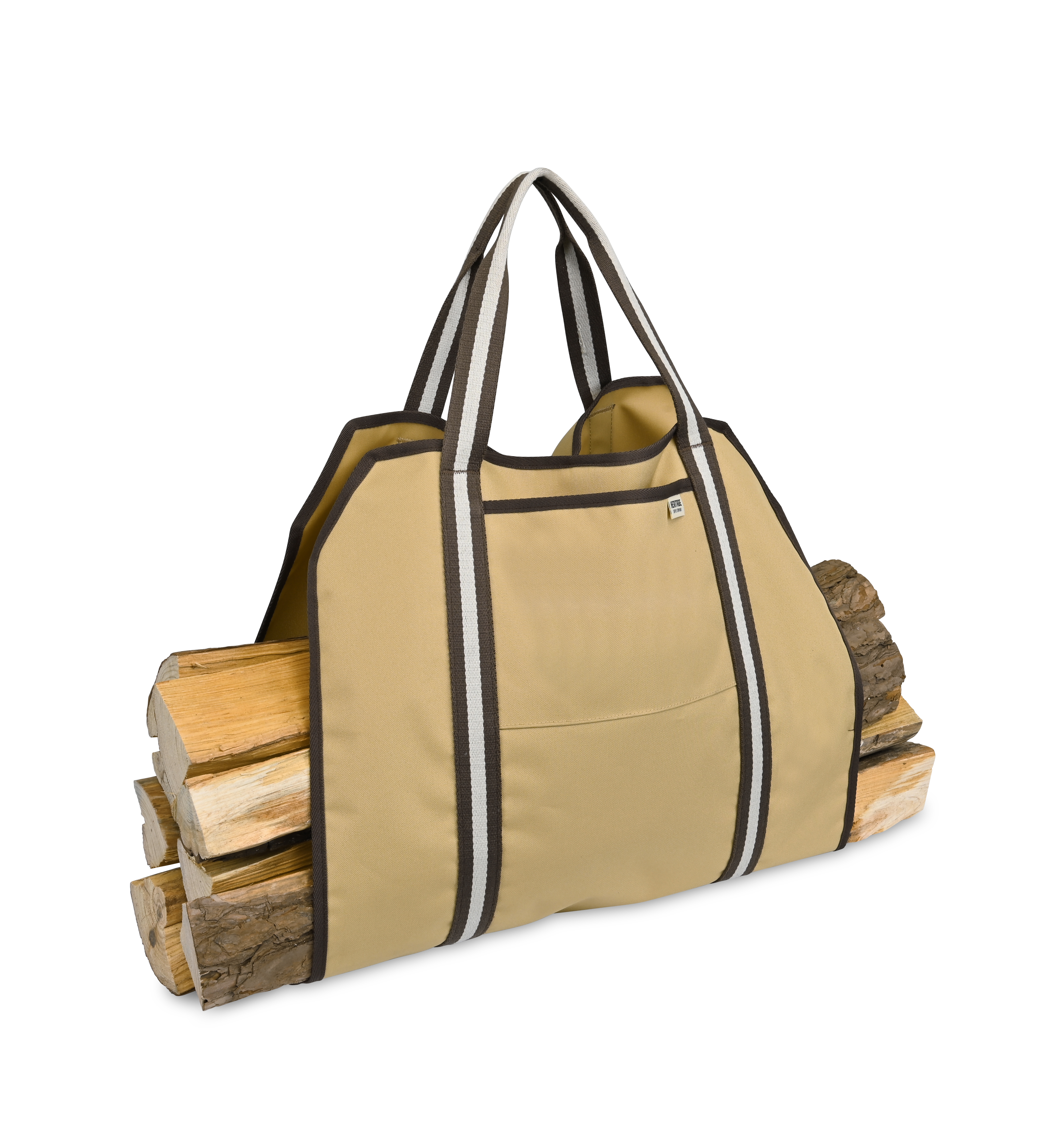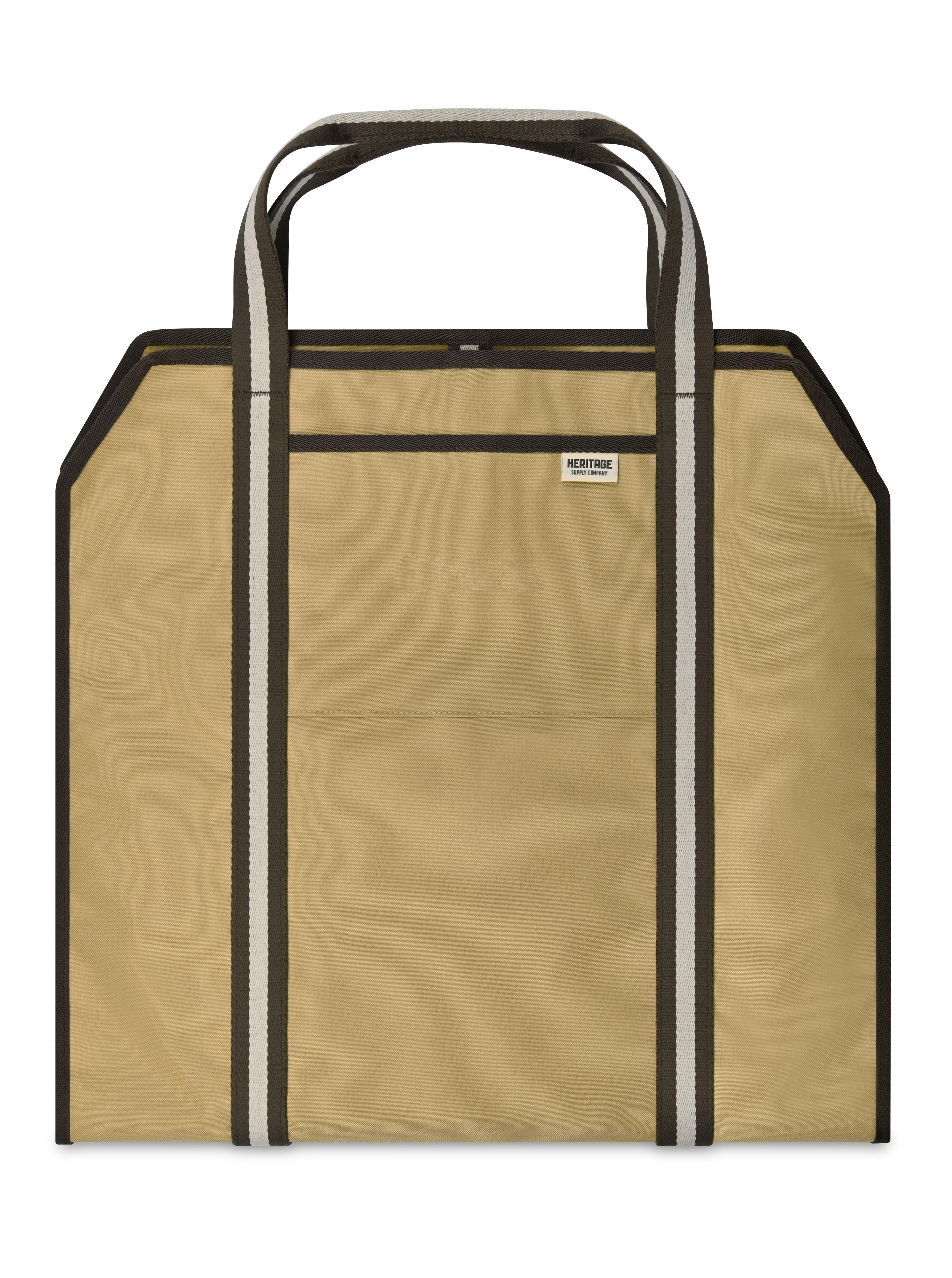 Simplify firewood hauling with the Heritage Supply™ Log Carrier. Its durable sling design holds up to 65 lbs. and easily folds for loading, carrying, and unloading. With an open-ended shape for logs of all sizes, a wipeable interior, and an exterior pocket, it’s a must for fireplaces, campsites, and patios.