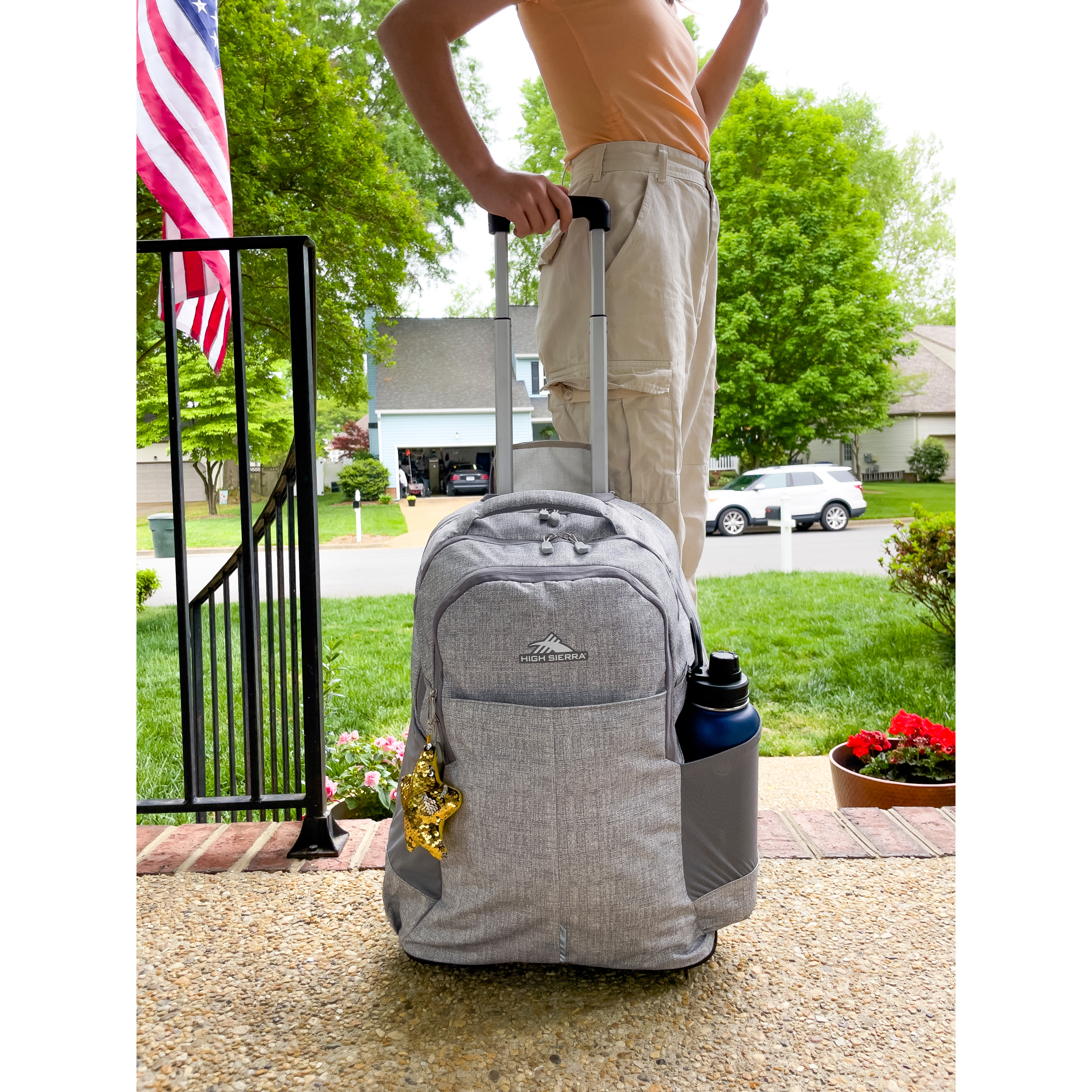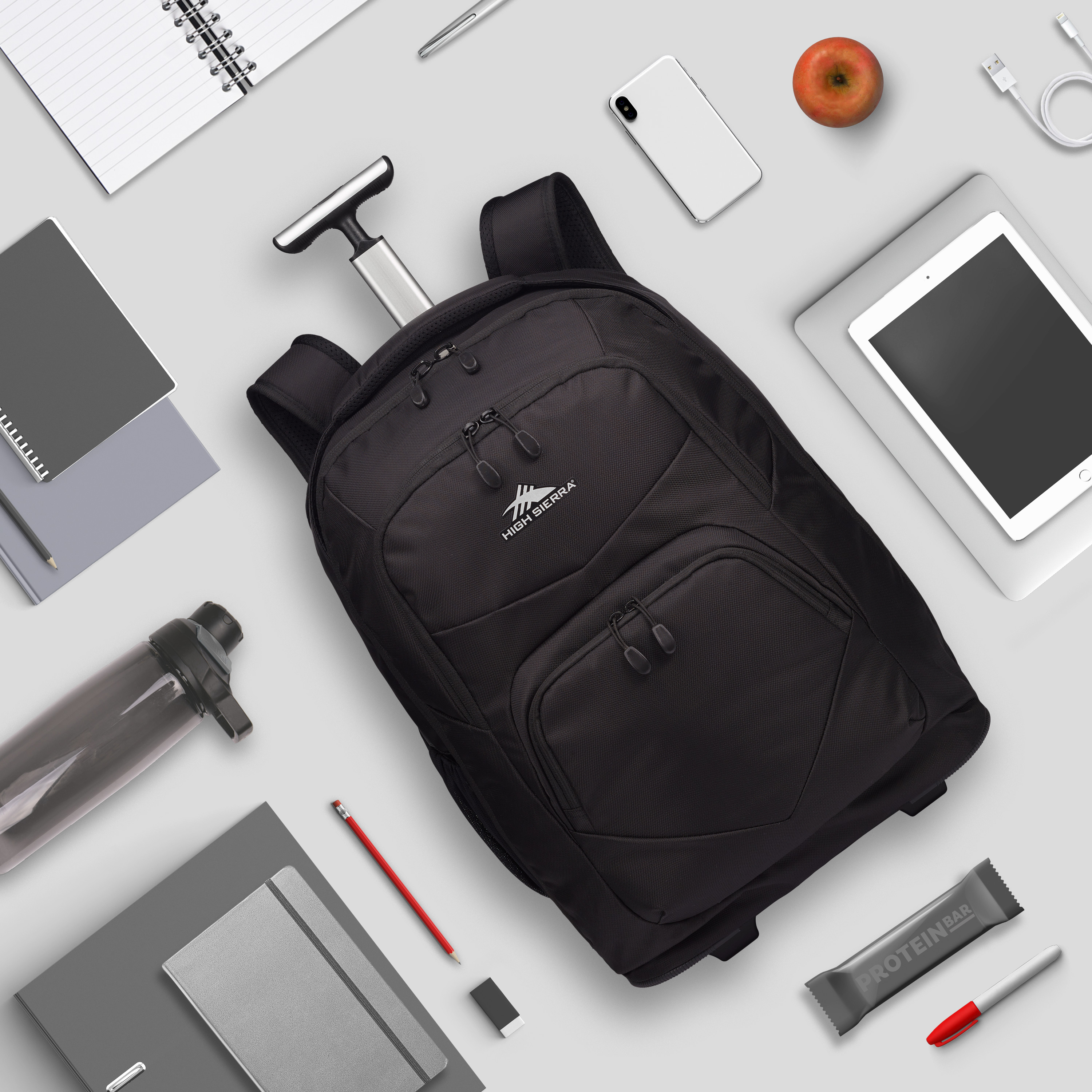 The High Sierra® Freewheel Pro Wheeled Backpack combines versatility and organization with smooth-rolling wheels and tuck-away straps for backpack carry. Featuring a padded 15" laptop sleeve, multiple compartments, and reflective accents, it’s the ultimate travel and everyday companion.