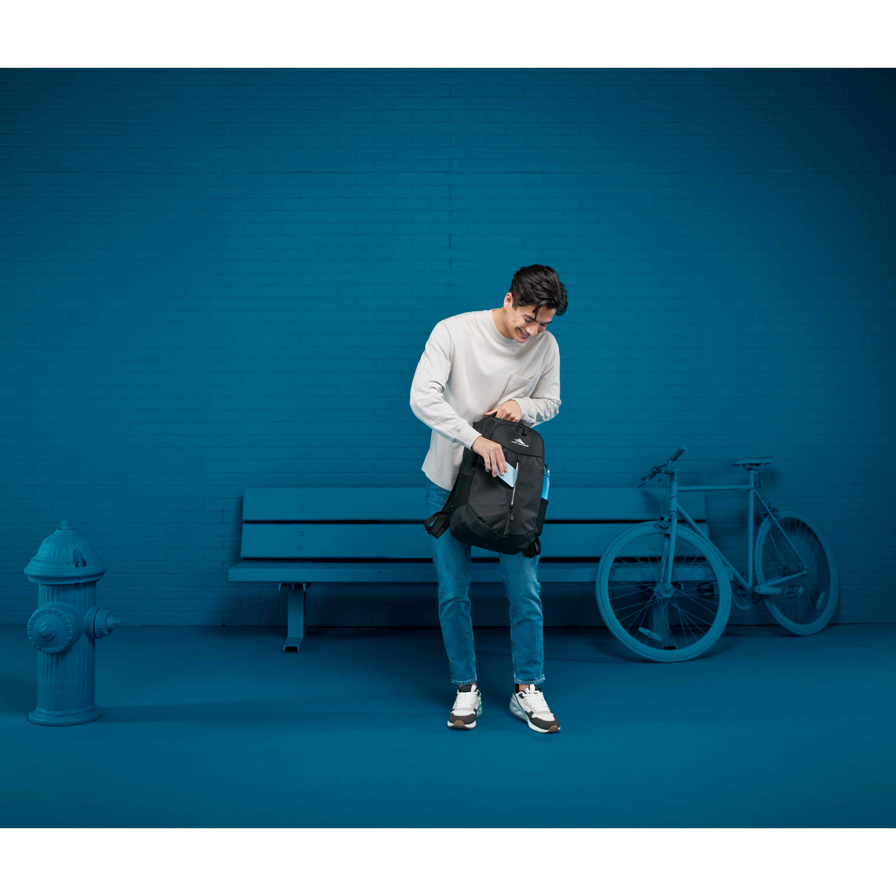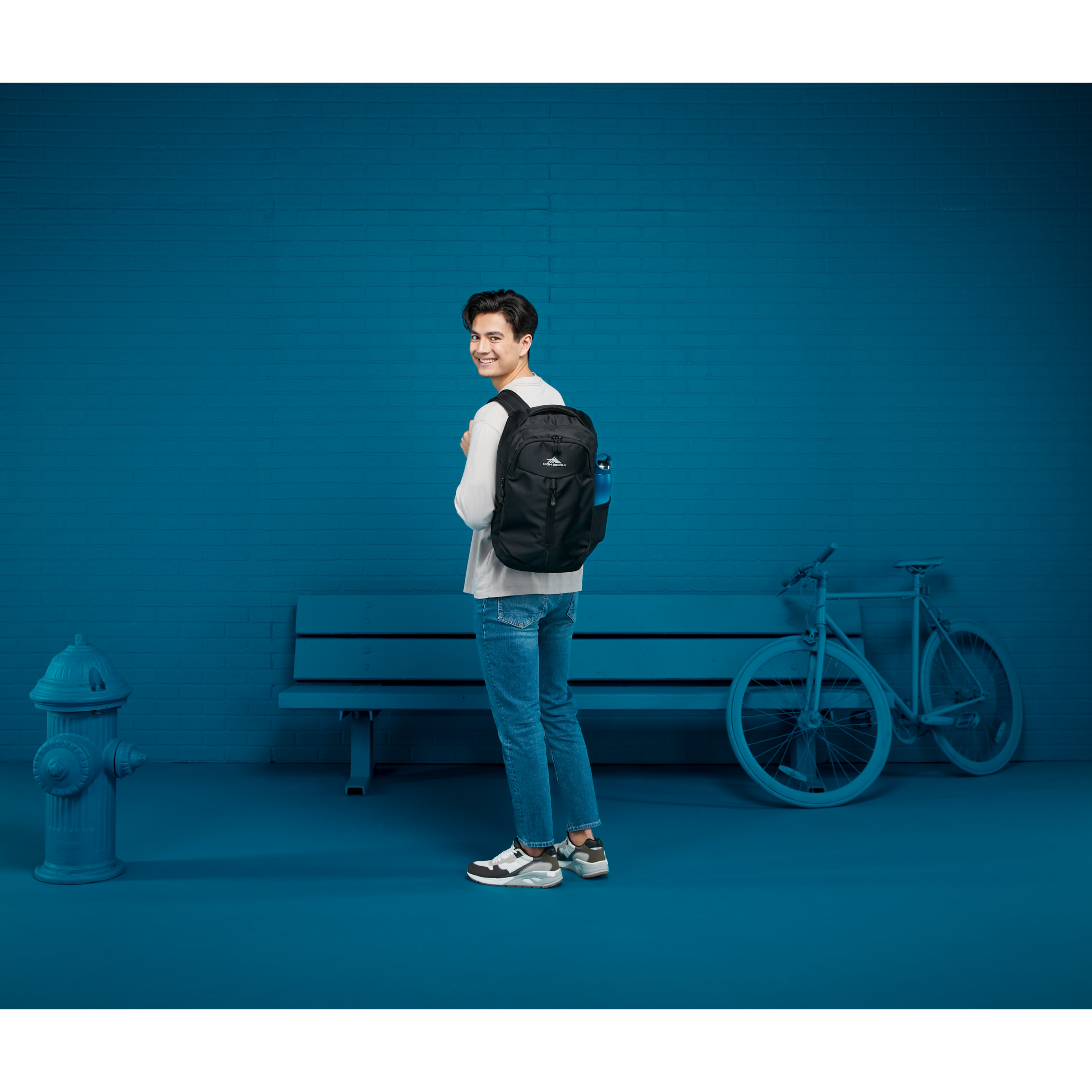 The High Sierra® Swerve Pro Laptop Backpack offers superior storage and comfort with a padded laptop hammock (fits up to 17") and tablet sleeve. Featuring 360 degrees reflectivity, multiple compartments, dual water bottle pockets, and airmesh straps, it’s built for tech, travel, and everyday organization.