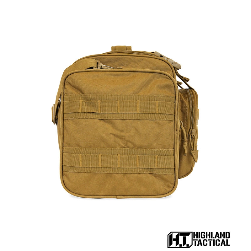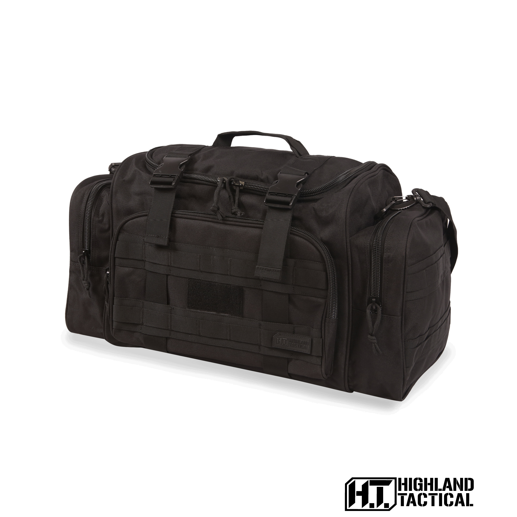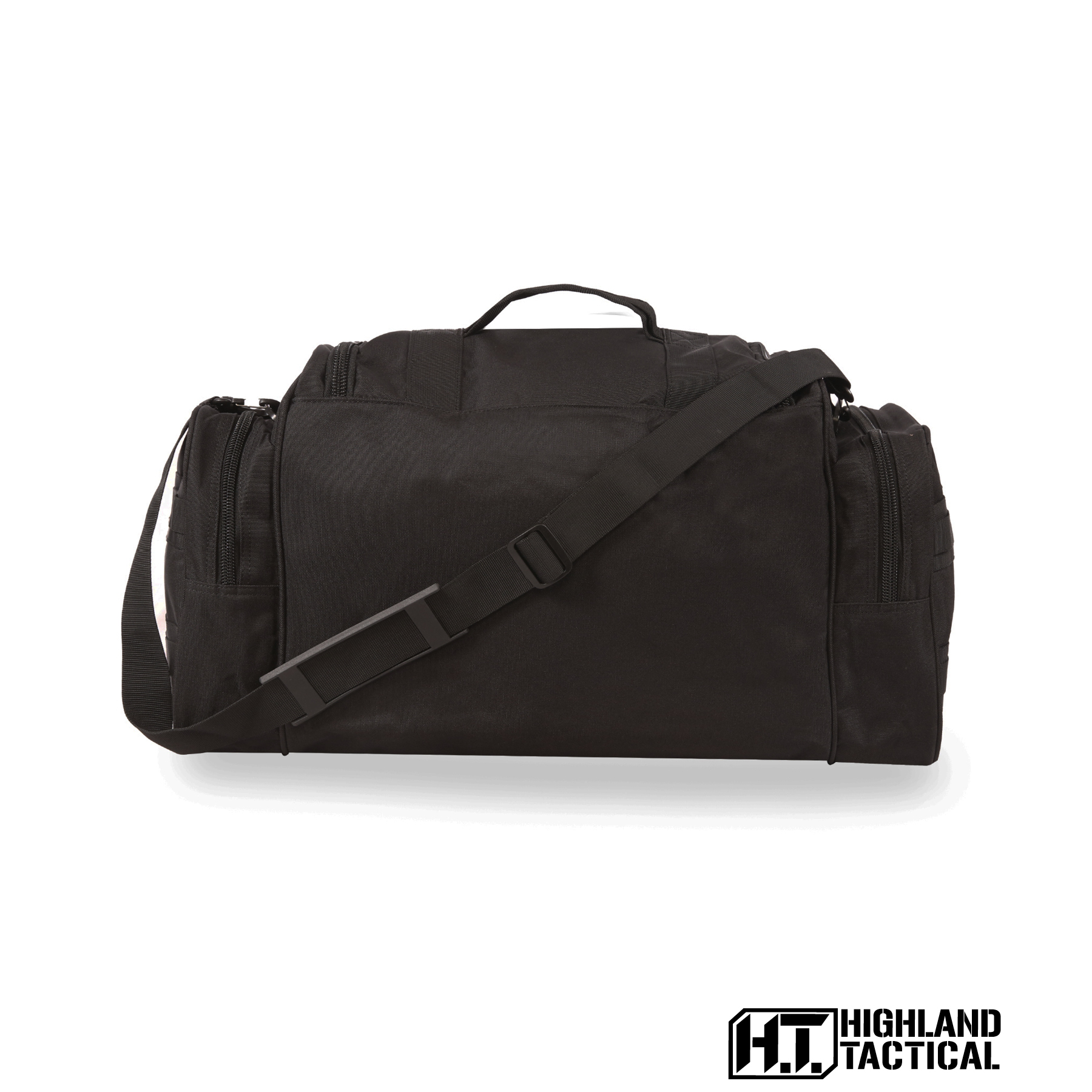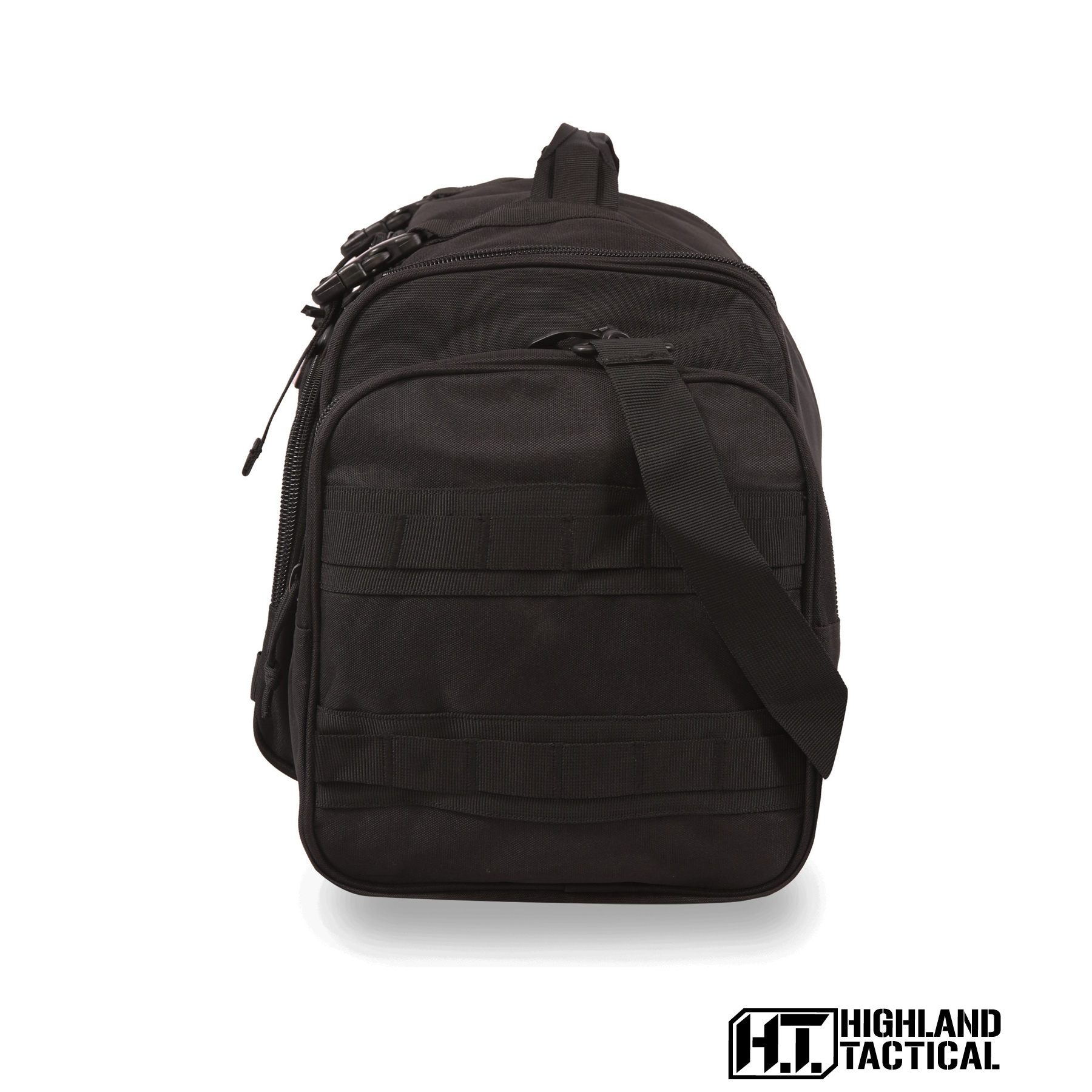 The Highland Tactical® Winchester Duffel Bag is rugged, tough, and built with purpose. It’s spacious main compartment with 2 mesh pockets is perfect for stowing gear, clothing, and all your necessities. The two zippered side pockets provide extra storage for smaller items and the large front pocket can store documents and other personal items, keeping them readily accessible at all times. This tactical duffel is equipped with MOLLE webbing all around and a hook and loop panel allowing for the attachment of extra gear and patches. Secure the contents when transporting extra weight using the the buckle straps and carry it using the reinforced top handle or the 1 1/2" x 45" removable and adjustable shoulder strap with grip pad. The Winchester also features a bottom stiffener and rail feet that provide additional durability.