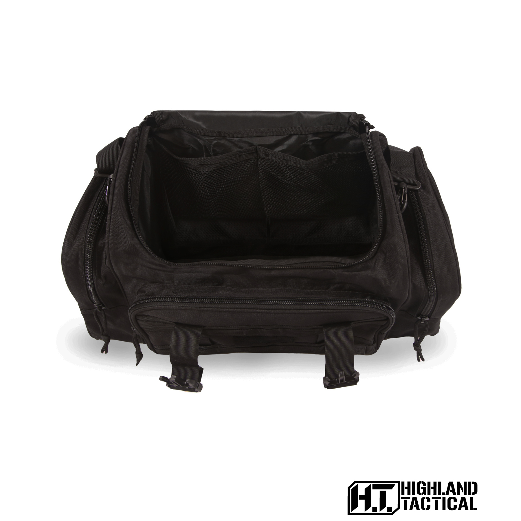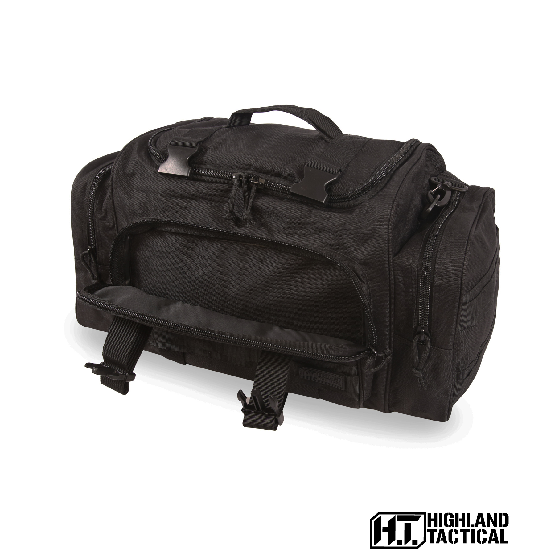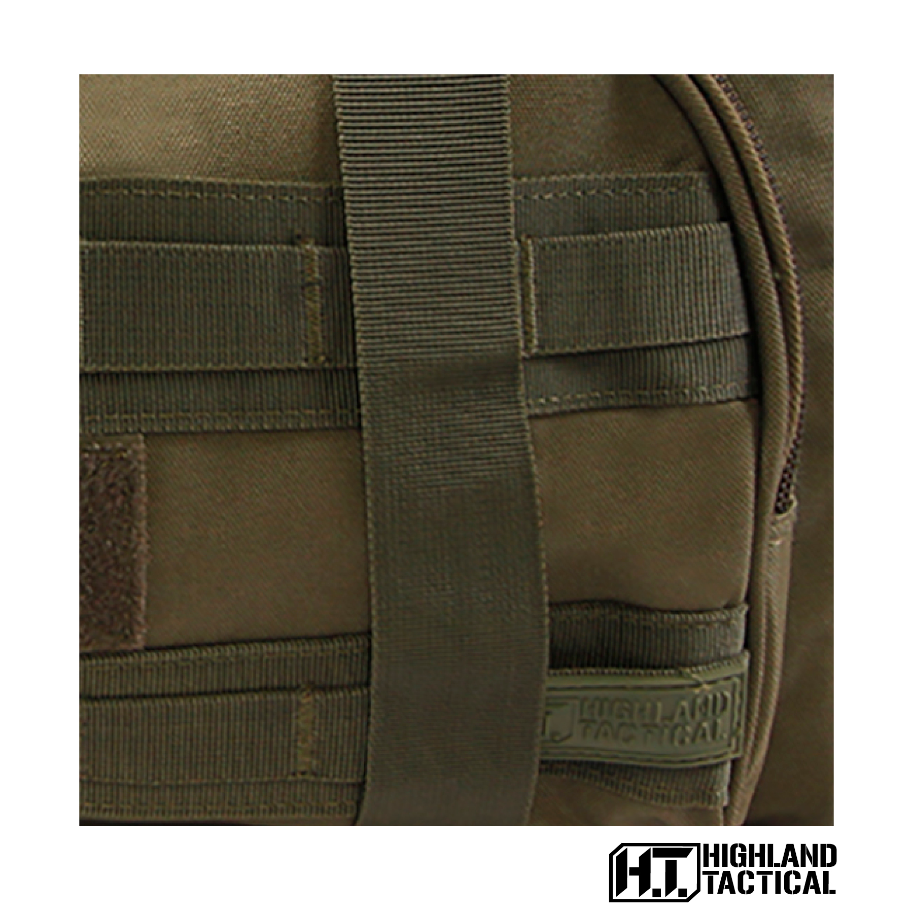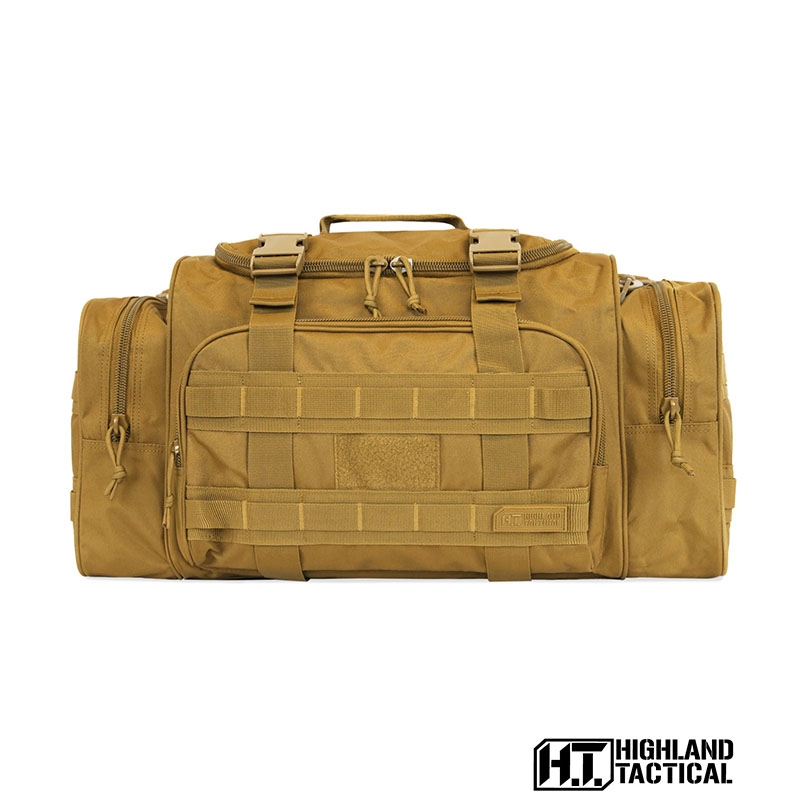 The Highland Tactical® Winchester Duffel Bag is rugged, tough, and built with purpose. It’s spacious main compartment with 2 mesh pockets is perfect for stowing gear, clothing, and all your necessities. The two zippered side pockets provide extra storage for smaller items and the large front pocket can store documents and other personal items, keeping them readily accessible at all times. This tactical duffel is equipped with MOLLE webbing all around and a hook and loop panel allowing for the attachment of extra gear and patches. Secure the contents when transporting extra weight using the the buckle straps and carry it using the reinforced top handle or the 1 1/2" x 45" removable and adjustable shoulder strap with grip pad. The Winchester also features a bottom stiffener and rail feet that provide additional durability.