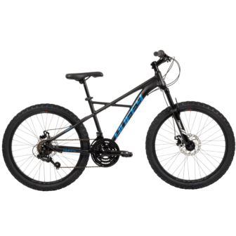 This 24" men's mountain bike features a precision crafted hardtail, steel frame; suspension fork; 21-speed, micro-shift twist shifting; Shimano TZ-31, 7-speed index derailleur; front and rear disc brakes; steel, 3-piece crank; padded seat; 24" x 2.4" knobby tires; and machined lightweight alloy rims that are weather resistant.