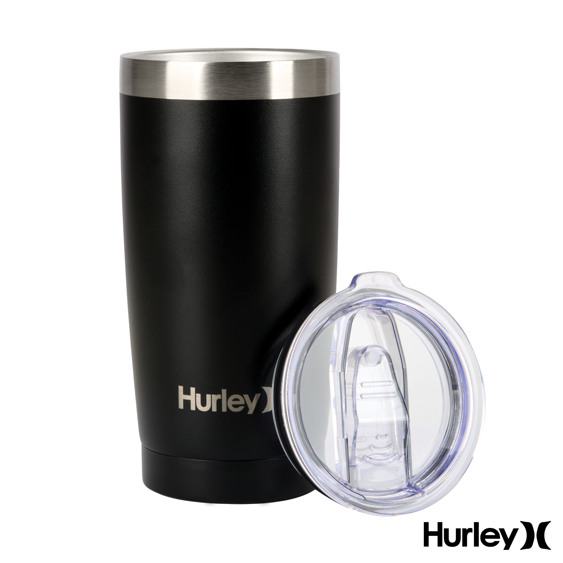 Upgrade your on-the-go beverage experience with the Hurley® 20 oz. Travel Tumbler, designed to keep you refreshed wherever life leads. Made from high-quality 18/8 stainless steel with copper lining and vacuum insulation, this tumbler delivers superior temperature retention, keeping drinks cold for up to 16 hours and hot for up to 8 hours. The clear AS lid features a smooth action, leak-resistant slider closure making it perfect for travel and commuting, or for hitting the waves or the slopes on your outdoor adventure. Its durable powder-coated finish not only adds a sleek and stylish touch but also improves grip and resists scratches, ensuring it stays looking great over time. BPA-free and FDA compliant.