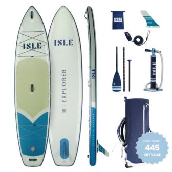 ISLE Stand Up Paddle Boards - 11'6 Explorer 3 Paddle Board - Sea Ice/Seafoam/Deep Sea