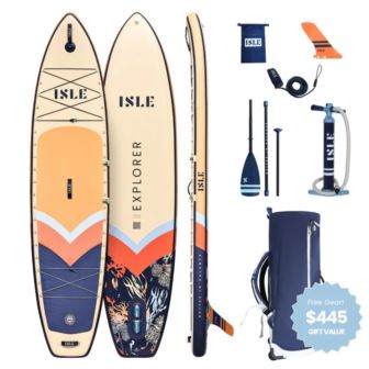 ISLE Stand Up Paddle Boards - 11'6 Explorer 3 Paddle Board - Sun/Ice/Coral/Navy