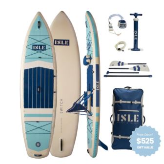 Upgrade your water adventures with the ISLE Switch 3 SUP-Kayak Bundle - the 2-in-1 inflatable hybrid built to do more. At 11'6", it delivers solid performance as both a stand-up paddle board and a kayak. Durable, travel-friendly, and backed by ISLE's 5-year warranty and 60-day guarantee. Whether cruising calm lakes or exploring winding rivers, it's the versatile, ready-to-ride craft that adjusts to your mood and your waters.