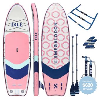 ISLE Stand Up Paddle Boards - 12' Megalodon 3 Paddle Board - Flamingo/Teal/Navy