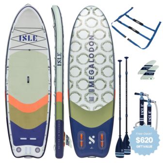 ISLE Stand Up Paddle Boards - 12' Megalodon 3 Paddle Board - Seafoam/Coral/Navy
