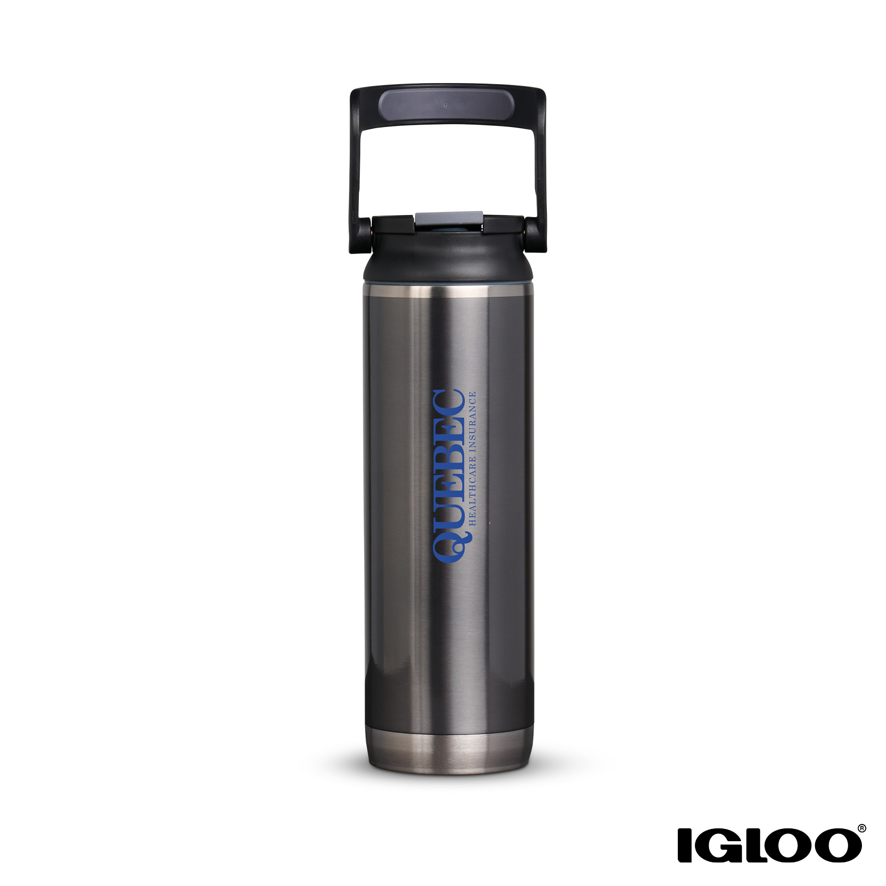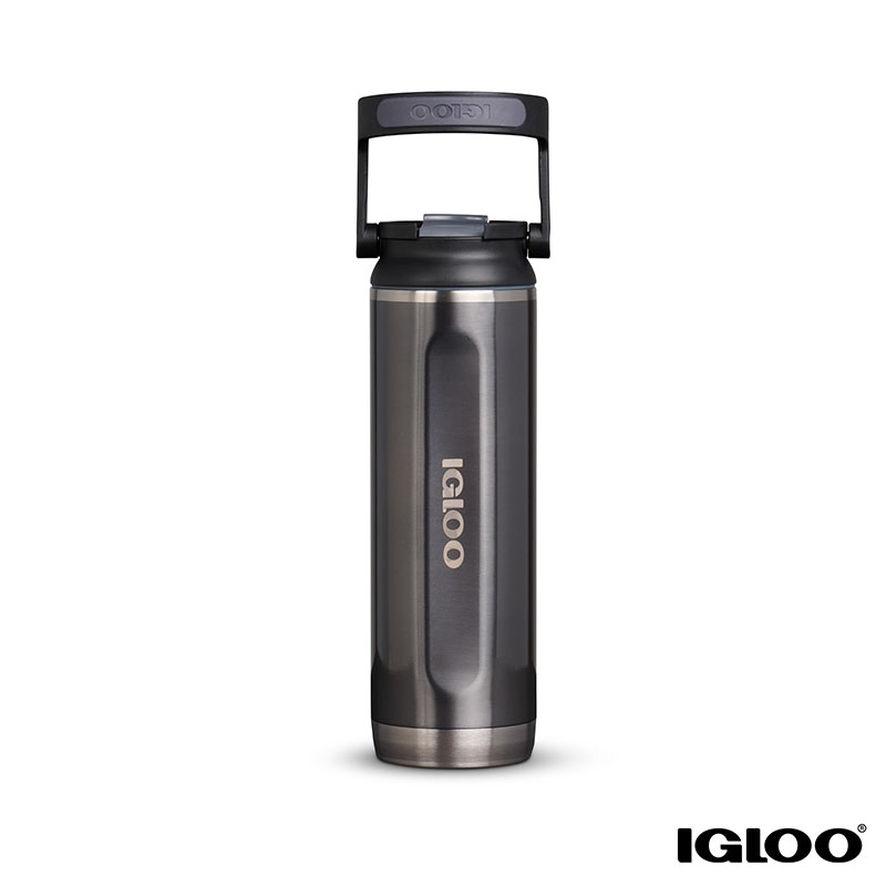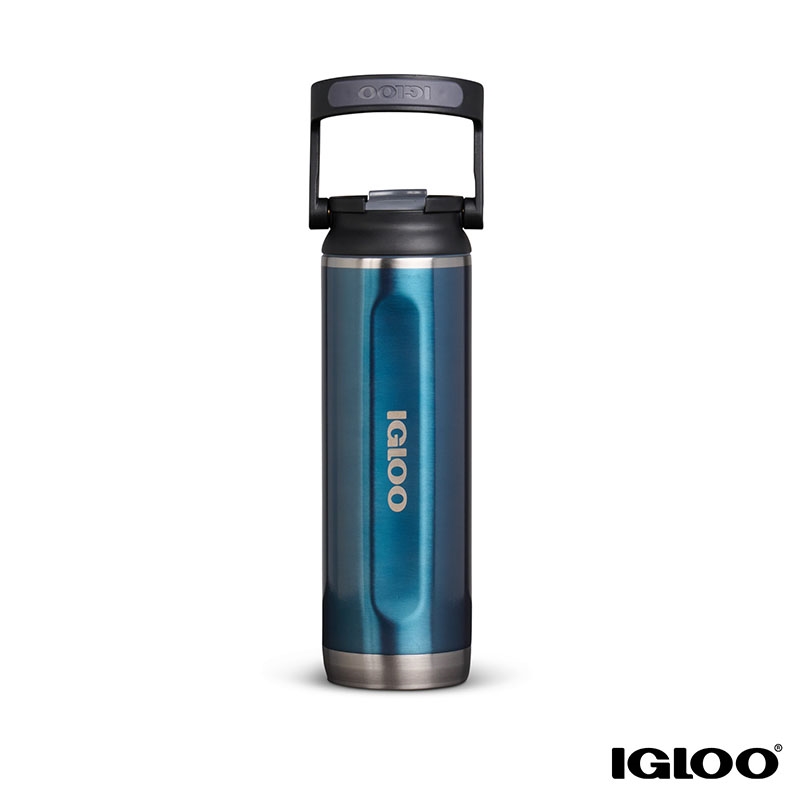 Gift the Igloo® 20 oz. Double Wall Stainless Steel Water Bottle to your sport-loving customers or coworkers and keep them hydrated throughout the day. This bottle is made of 18/8 food-grade stainless steel and will keep drinks hot for 12 hours and cold for 24 hours. It features a leakproof threaded lid with touch-free flap lift to keep your drinking straw clean, a thumb grip indent for a comfortable hold, and the form hugging swing handle makes the bottle sleek, easy to store and easy to carry. Its slim bottle profile fits into most standard car cup holders and the built-in silicone coaster protects the bottle and surfaces. FDA Compliant and BPA Free.