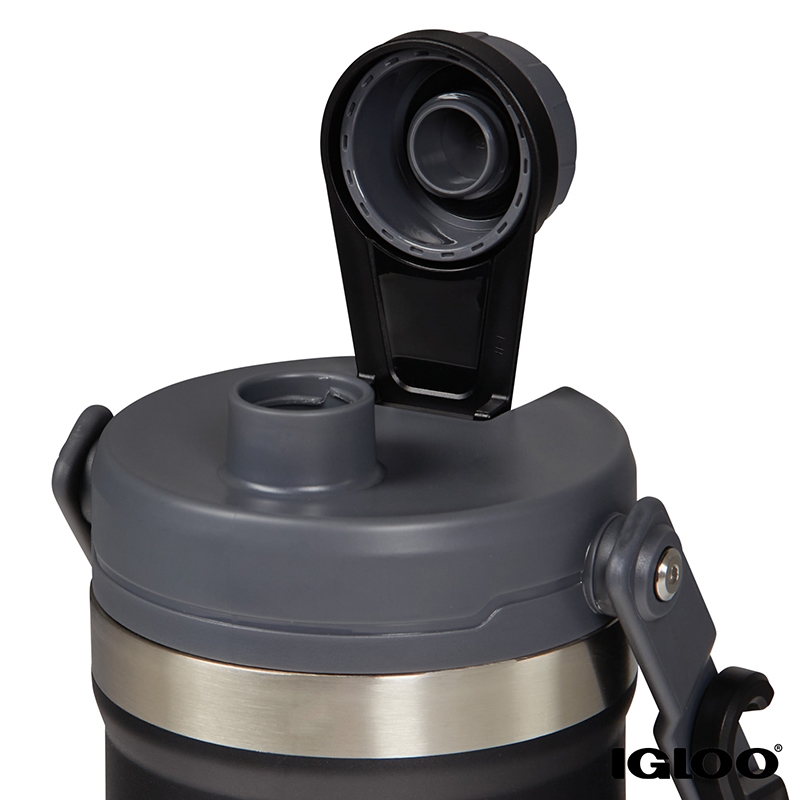 The large capacity of the Igloo® 64 oz. / Half Gallon Jug makes it a perfect choice for a long outing or family sharing. The 18/8 double wall stainless steel, vacuum-insulated construction can keep your liquid nice and cool for a lengthy 36 hours. The dual opening lid is functionally designed featuring a threaded chug spout with tethered lid for drinking and a main opening that is extra large making it easy to clean and add ice. The large swing handle makes carrying this bottle easy and its handy retracting fence hooks can be used to keep the jug within reach on the field. It also has a durable powder coat finish and is FDA compliant and BPA free.