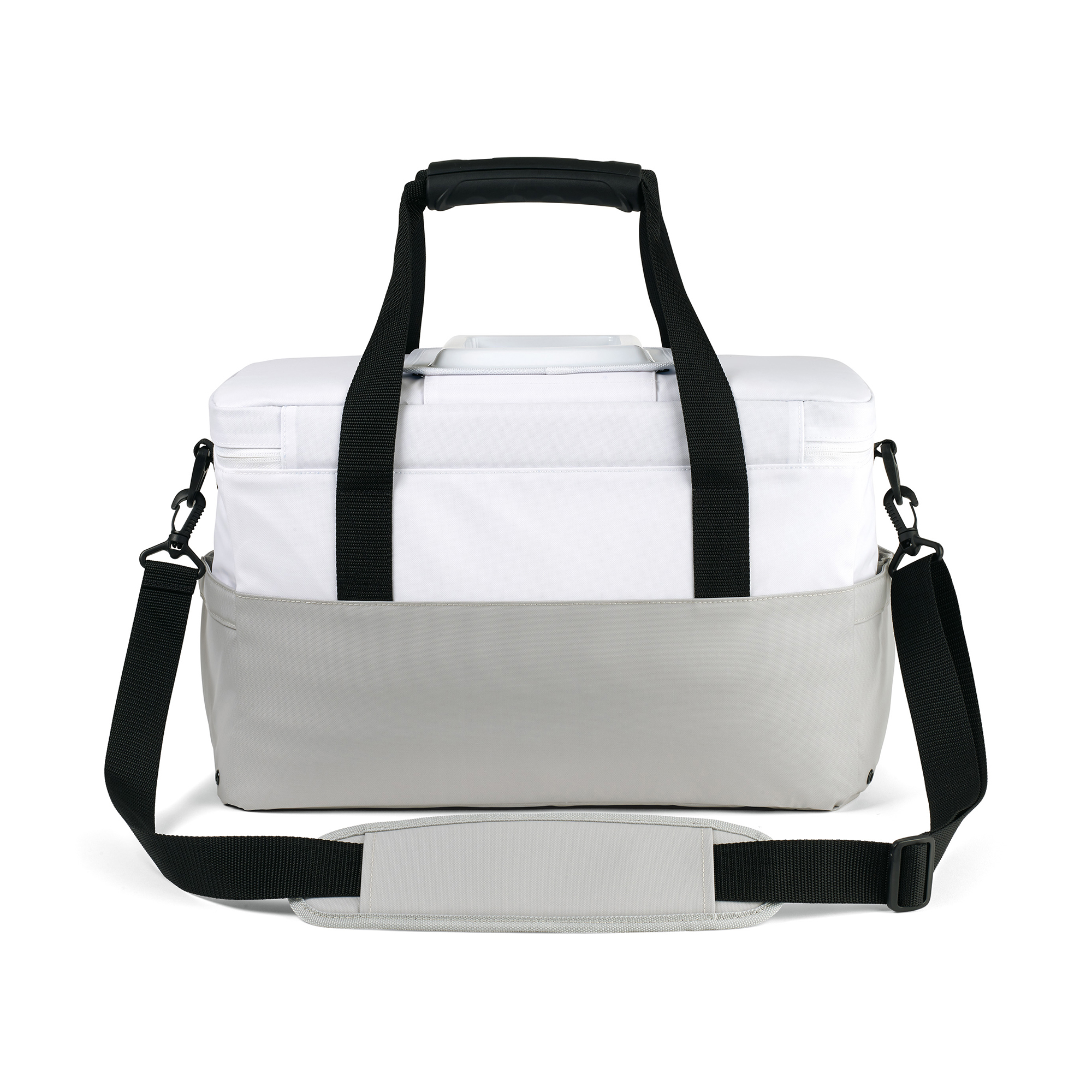 The Igloo Seadrift Cooler collection features MaxCold® insulation and a classic colorblock design. Dual zippered opening to large main compartment. Top hatch for easy access to contents of cooler. Comfortable, rubberized top handles secure together for easy carrying. Deep, gusseted front zippered pocket for additional storage. Dual side pockets for water bottles and other belongings. Removable, adjustable padded. Shoulder strap.
