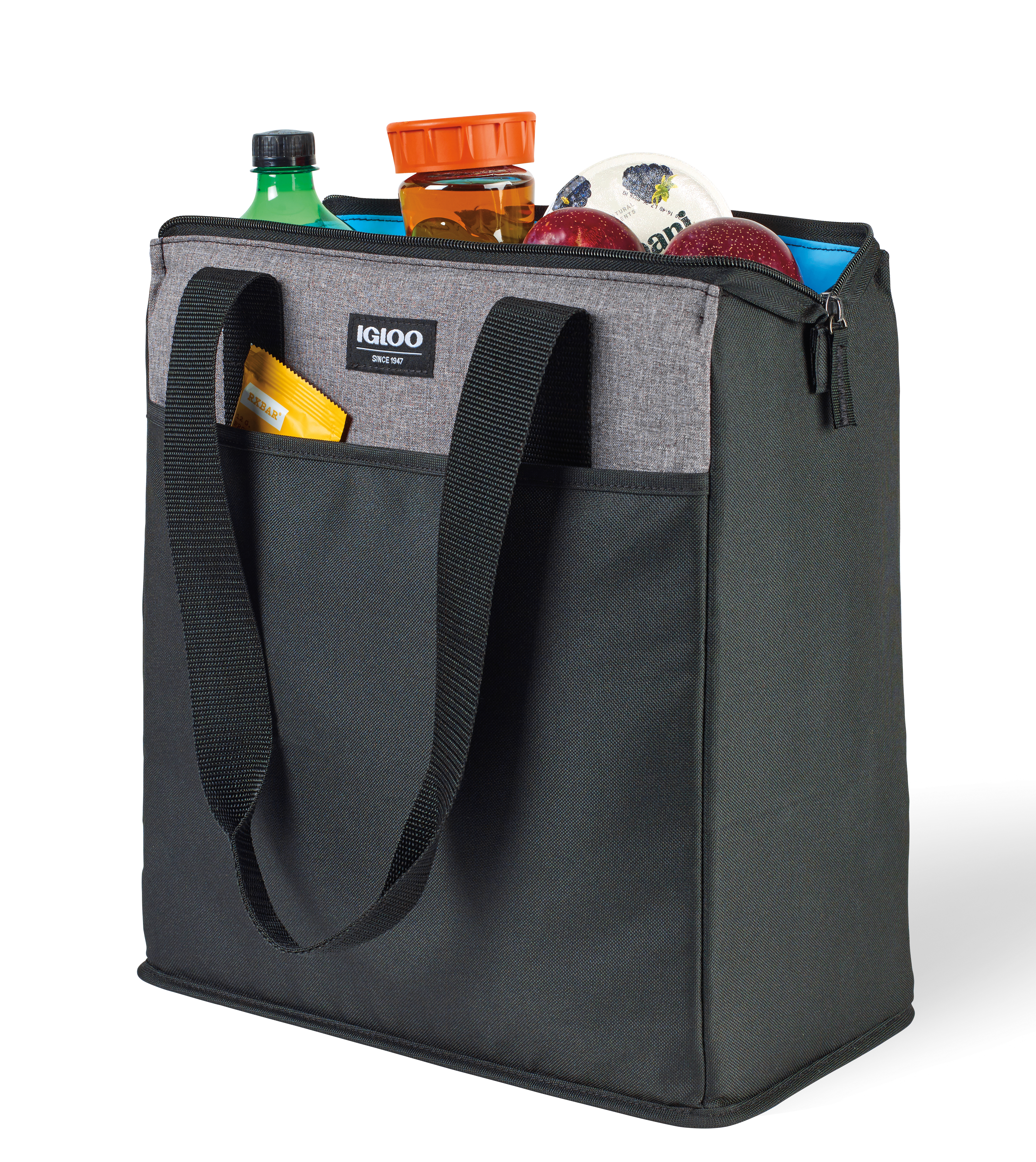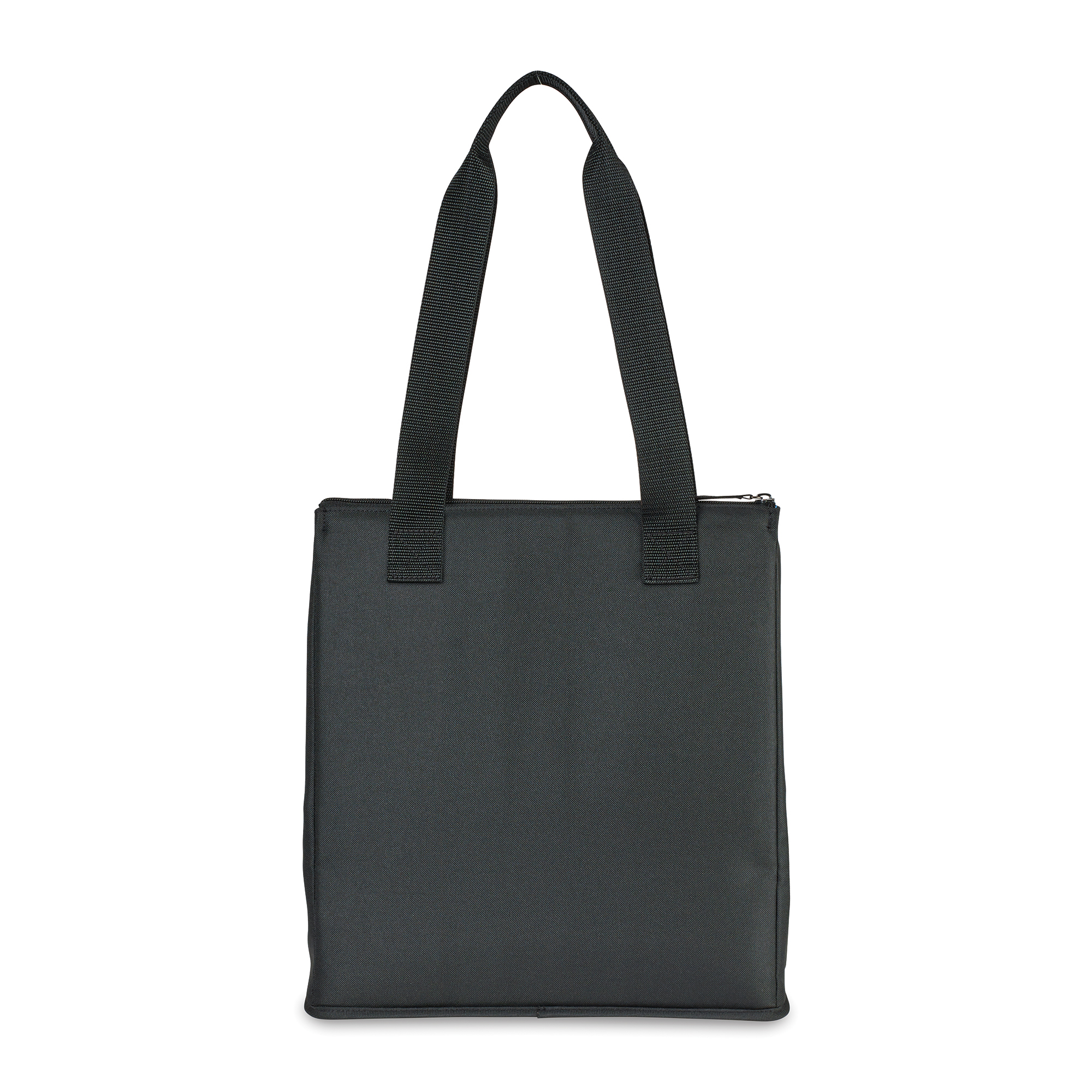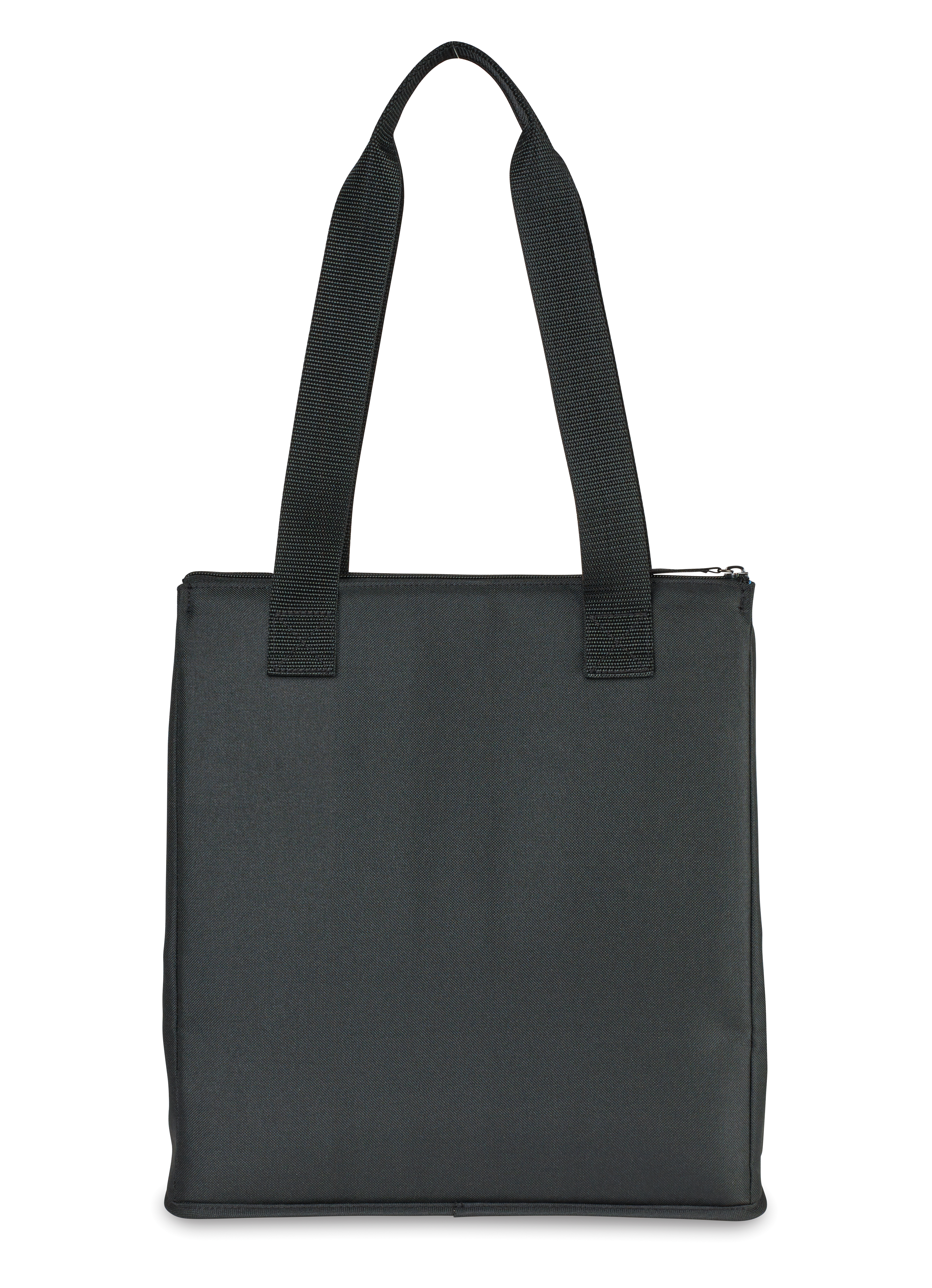 Reusable insulated tote perfect for trips to the grocery store or farmer's market. Zippered opening to main compartment with generous gusset for maximum capacity. Front pocket for storing extra essentials. 26" shoulder straps. PVC free. Phthalate free.