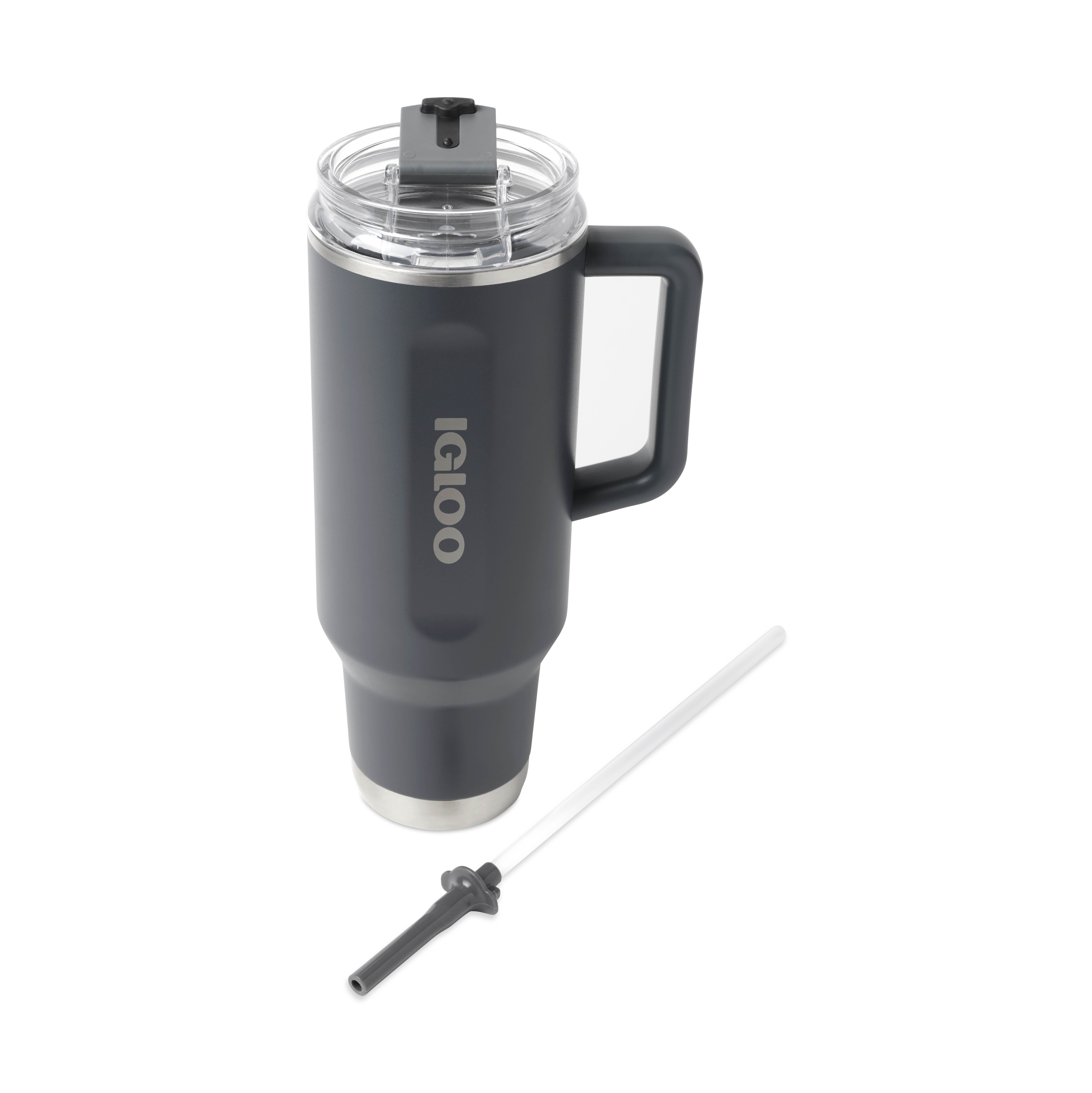 Stay hydrated all day with the Igloo® Travel Tumbler 40 Oz, crafted from 90% recycled stainless steel. Its double-wall vacuum insulation with copper lining keeps drinks at the perfect temperature, while the leak-resistant flip n’ sip lid, 2-piece straw, and side handle add convenience. Fits most cup holders for easy travel.