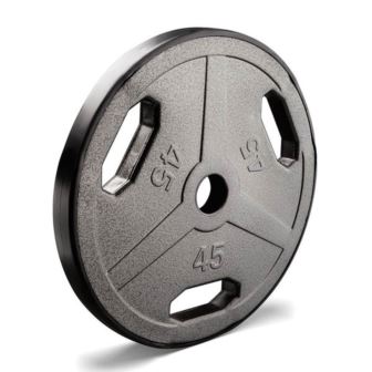 The MCW-45 Classic Olympic Plate offers 45 pounds of solid, eco-friendly cast-iron resistance for strength training. Designed with three grip holes for easy handling, it's built to resist rust and last through heavy use. Great for barbell lifts, plate loaded machines, or functional workouts. It's not for commercial gyms but adds serious value to your home setup.