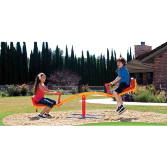 Move up and down and from side to side like a Merry-Go-Round. Coaster wheels allows the teeter totter to spin freely 360°. Heavy duty frame w/ durable powder coated finish. Comfortable seats with back supports for added safety. Easy to grasp handle for balancing on seesaw.