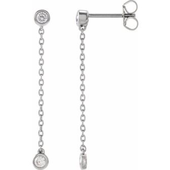 Elevate your elegance with our 14K White Gold 1/4 CTW Lab-Grown Diamond Bezel Chain Earrings. These exquisite earrings feature two diamonds delicately connected by a 14K white gold chain, adding a touch of refinement and subtle sparkle to your collection. Perfect for enhancing your style on any occasion. 14K White 1/4 CTW Lab-Grown Diamond Chain Earrings.