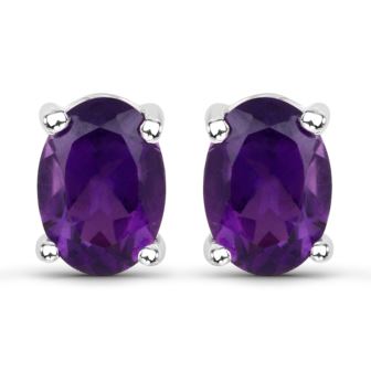 Elegance in every detail, these 1.60 Carat Genuine Amethyst Oval Earrings are gracefully set in 18K White Gold over Sterling Silver. They beautifully frame the deep violet allure of amethyst, creating a timeless and refined accessory that embodies sophistication and natural beauty. 1.60 Carat Genuine Amethyst Oval Earrings in 18K White Gold over Sterling Silver