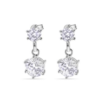 Hanging Two Clear CZ Dangling Earrings in Rhodium Plating over 925 Sterling Silver