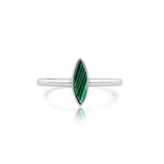 Green Accent Stone Cat's Eye Ring in Rhodium Plating over 925 Sterling Silver Size-9