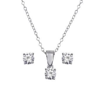 Indulge in understated elegance with our Rhodium Plated Small Crystal AB CZ Necklace-Earring Set in 925 Sterling Silver. This sophisticated ensemble combines the subtle shimmer of Crystal AB cubic zirconia with the timeless beauty of sterling silver. It's a graceful addition to your collection, adding a touch of refinement to your style. Rhodium Plated Small Crystal AB CZ Necklace-Earring Set in 925 Sterling Silver.
